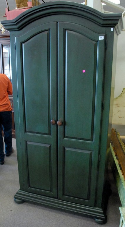 Green Southern Furniture Company two door armoire with several shelves on inside, ht. 82, wd. 38.