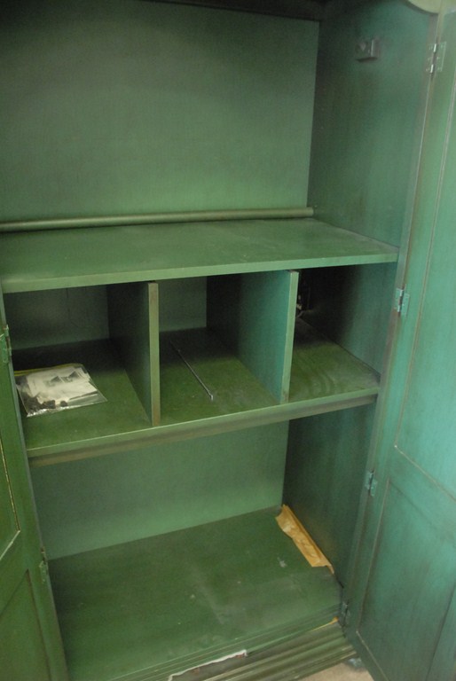 Lot 166: Green Southern Furniture Company two door armoire with several shelves on inside, ht. 82, wd. 38.