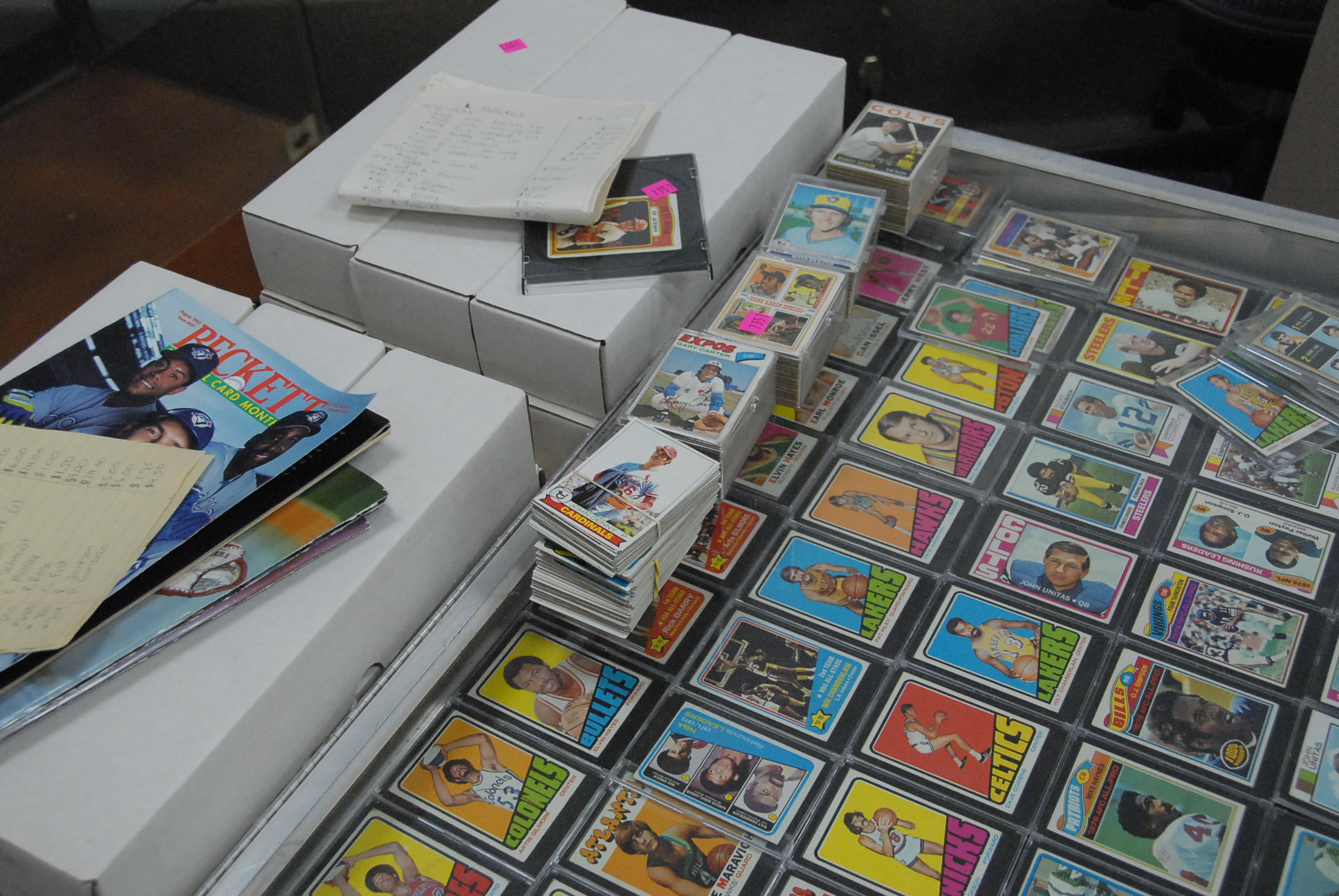 Large group of trading cards to include baseball, football, hockey, and baseball cards.