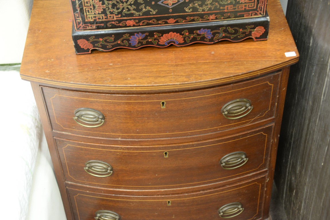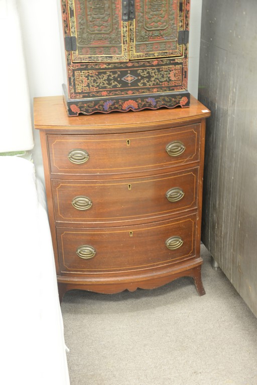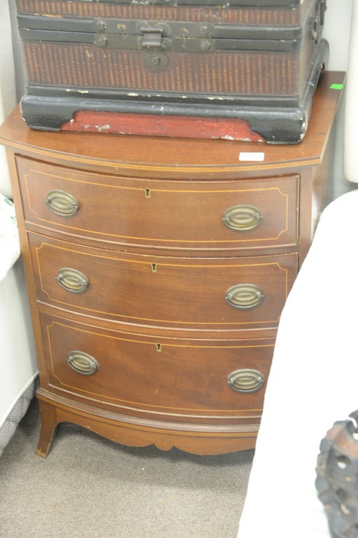 Lot 166: Pair of Biggs three drawer diminutive small chests, mahogany with line inlays. ht. 28in., wd. 22in.