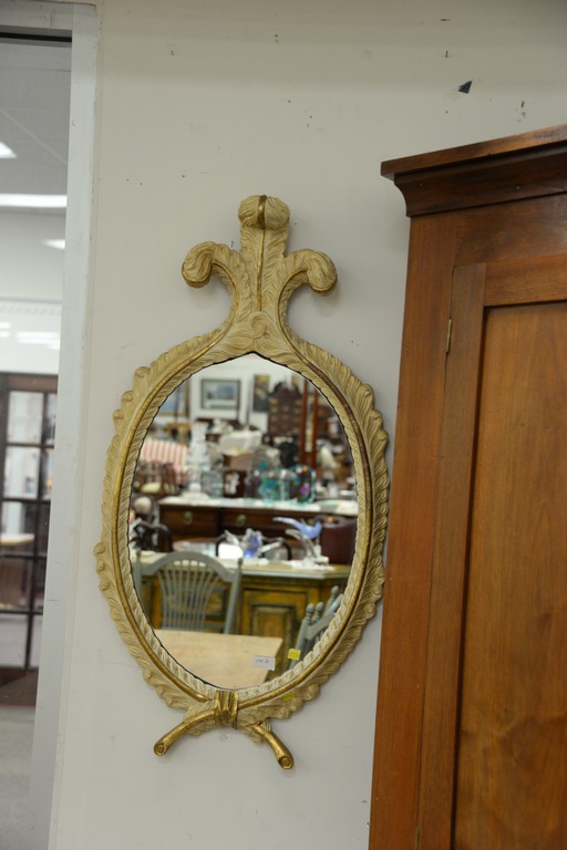 Pair of decorative mirrors with plume tops. ht. 39 in.