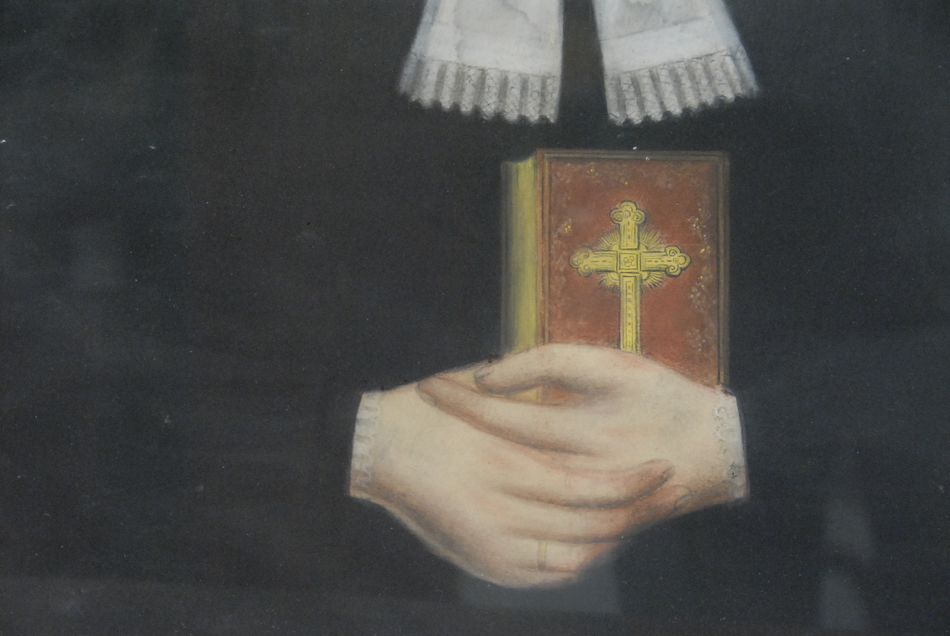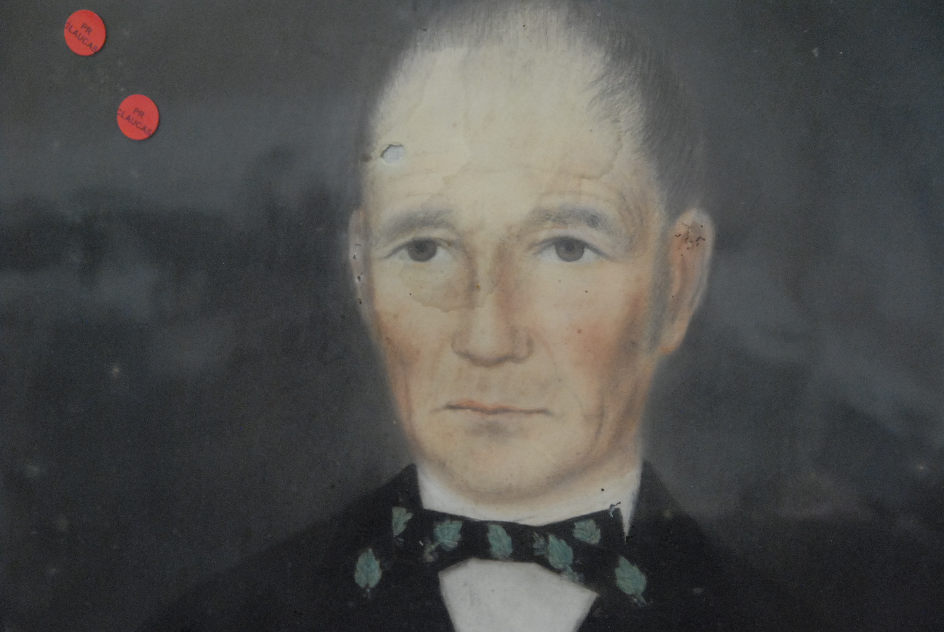 Pair of primitive pastel portraits in gilt Victorian frames, early to mid 19th century.