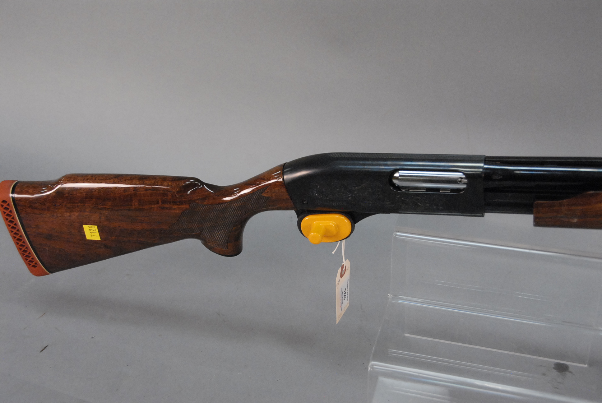 Lot 166: Remington model 870 shotgun, Wingmaster Classic trap gun, 12 gauge pump action, mark on barrel Target Contour with 30 barrel, s/n D…