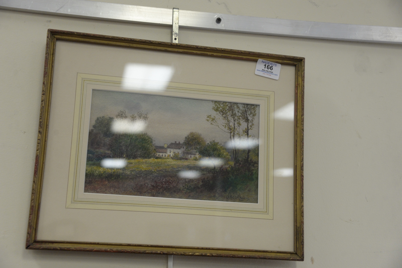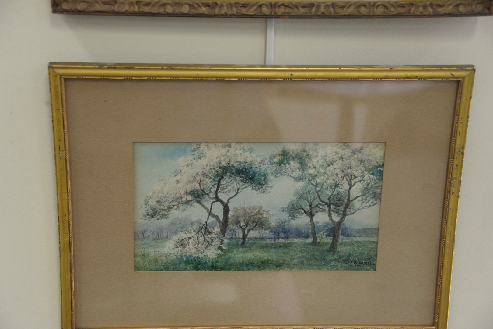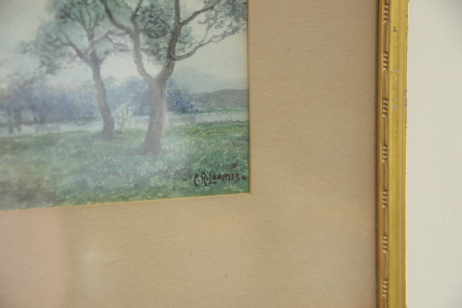 Lot 166: Three Charles Russell Loomis (American, 1857 – 1936), each watercolor on paper, depicting a country house, a springtime field, along with a misty inlet, each signed lower right “C.R. Loomis”, largest sight size 6″ x 10″. Provenance: Estate of James Wadhams.
