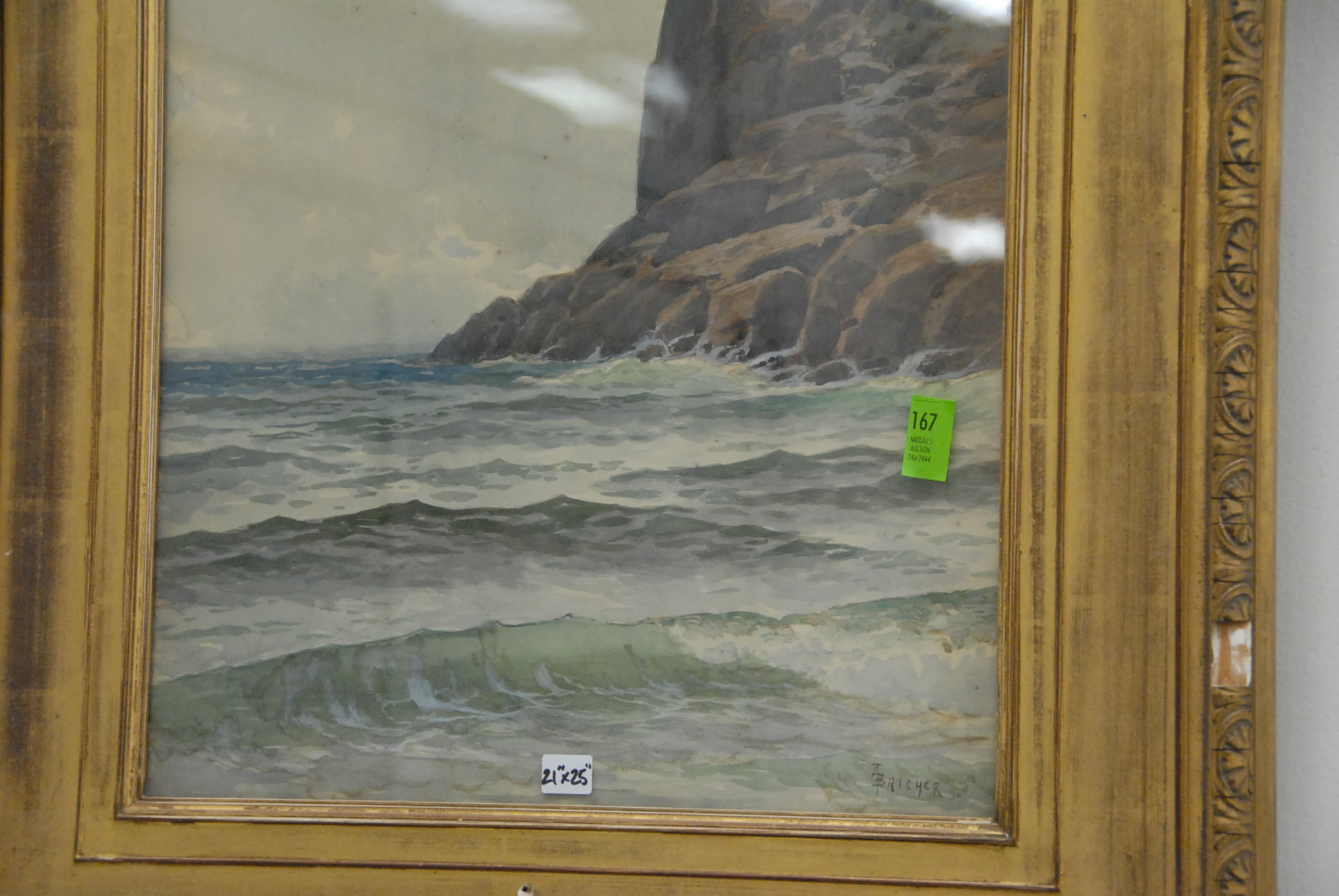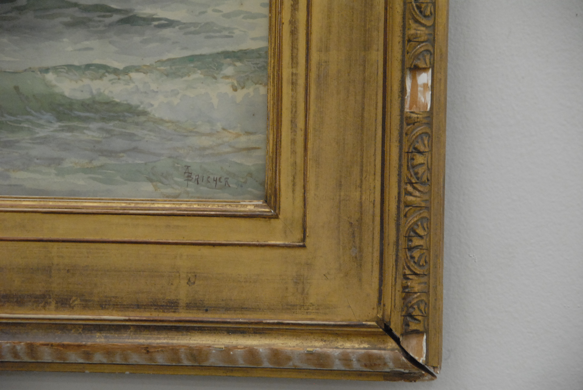 A. T. Britcher watercolor seascape in original frame.