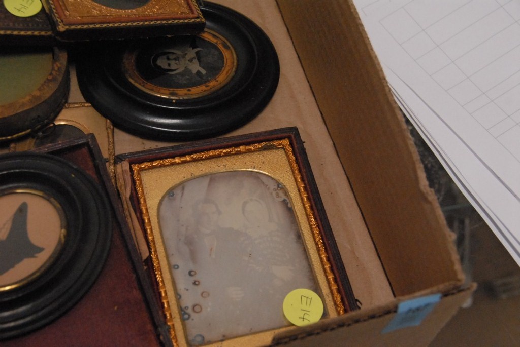 Box lot of tin type, daguerreotypes and ambrotypes.