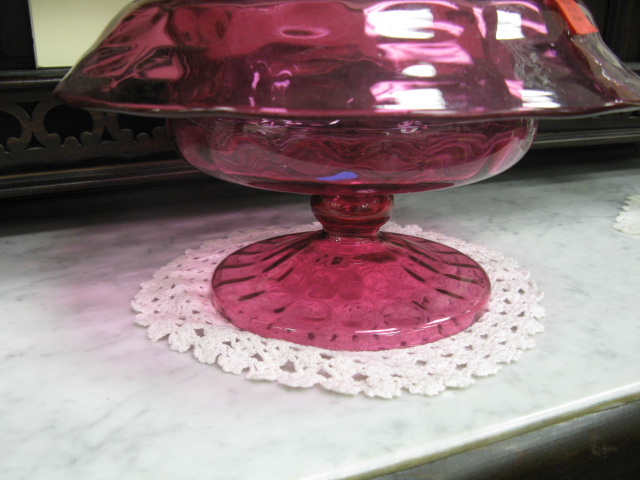 Cranberry footed bowl from the estate of Broadway actress Leta Gold