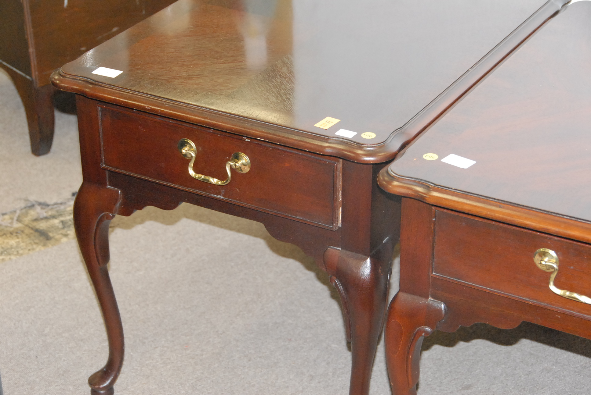 Lot 167: Pair of mahogany banded inlaid end tables.