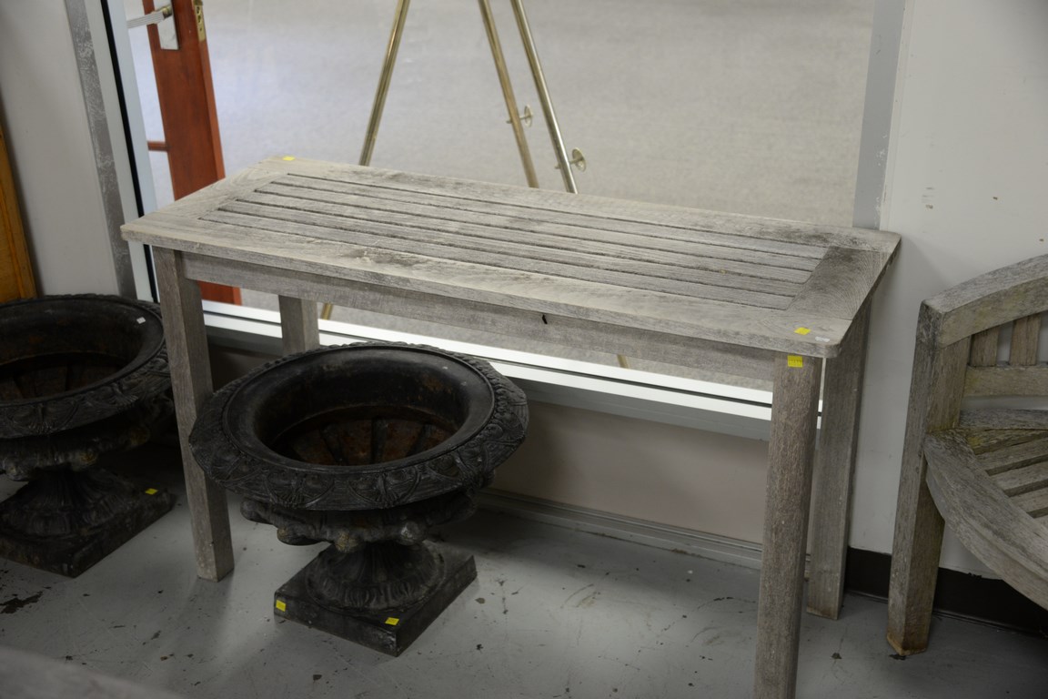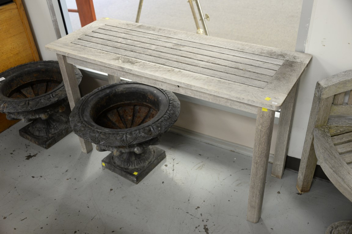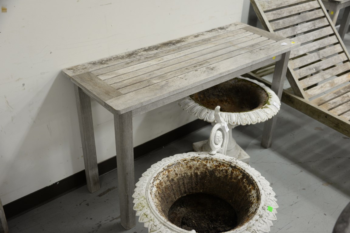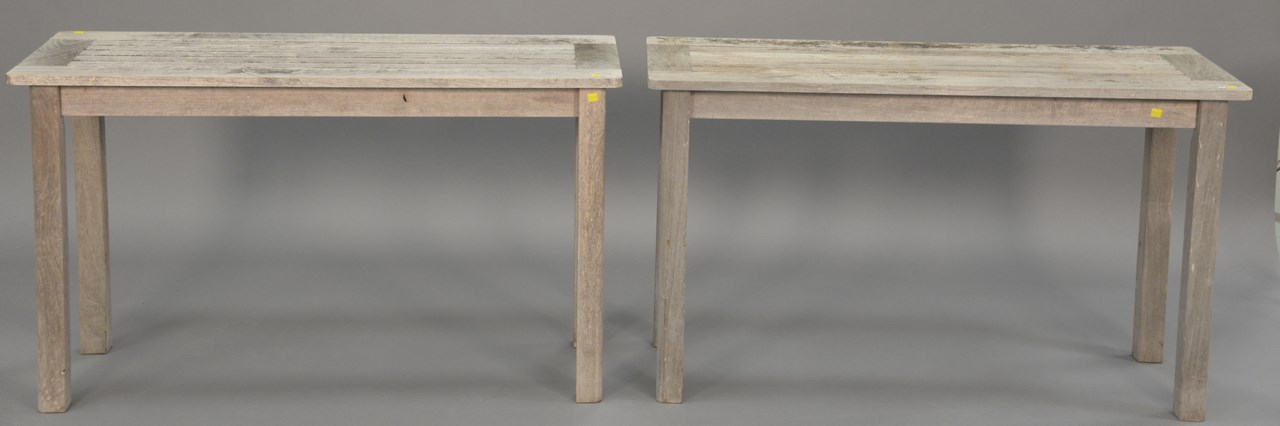 Lot 167: Pair of teak serving tables. top: 18 x 48