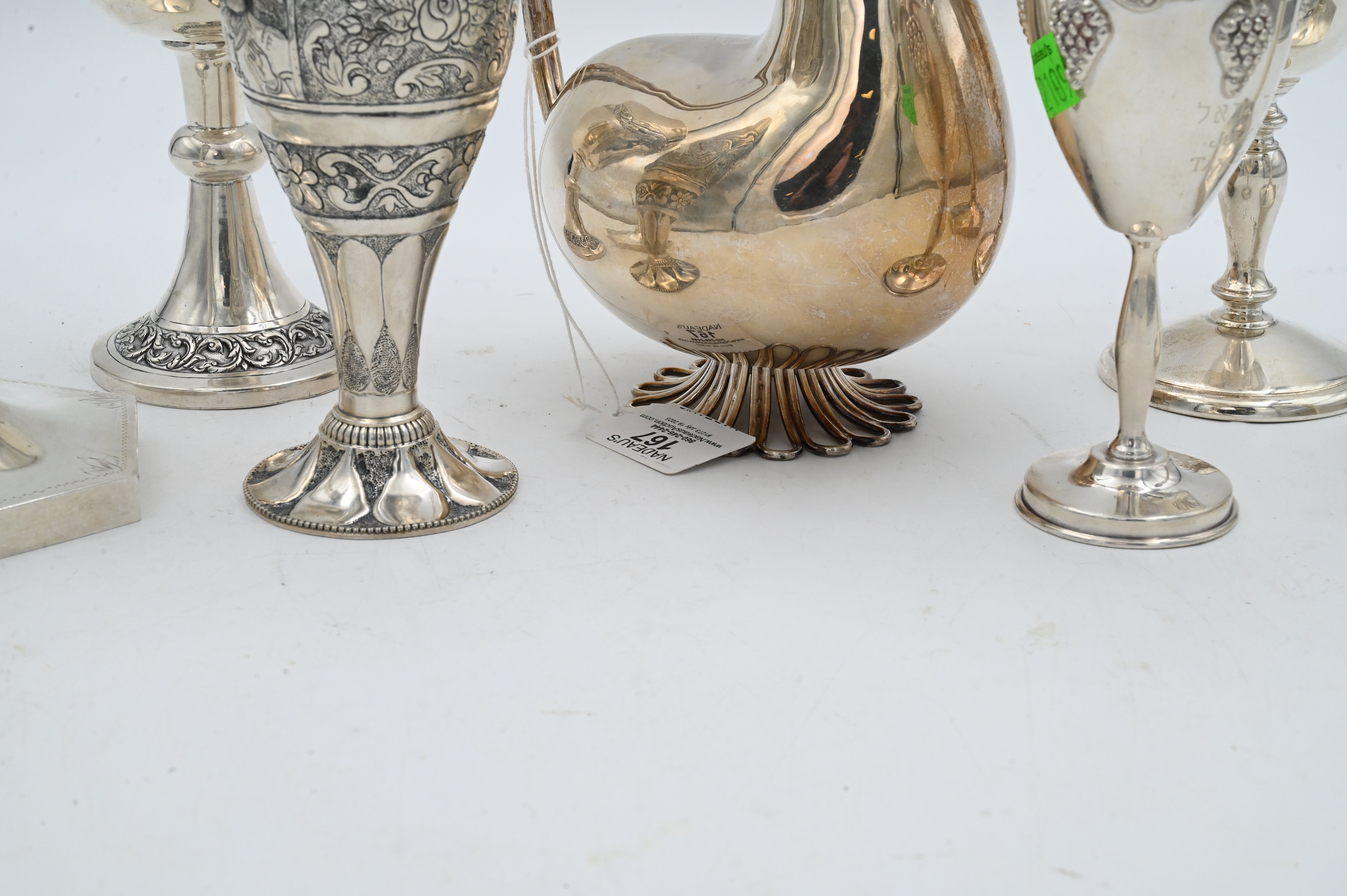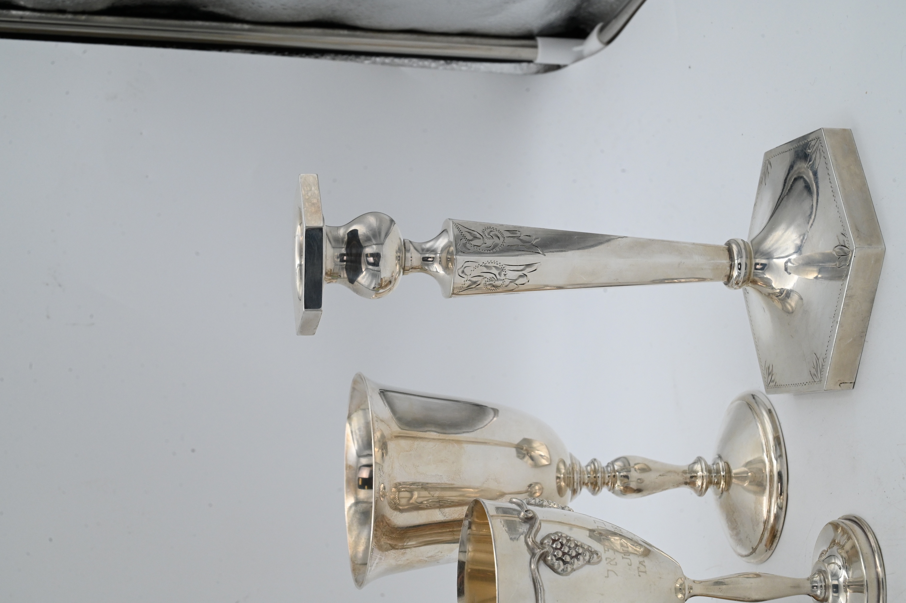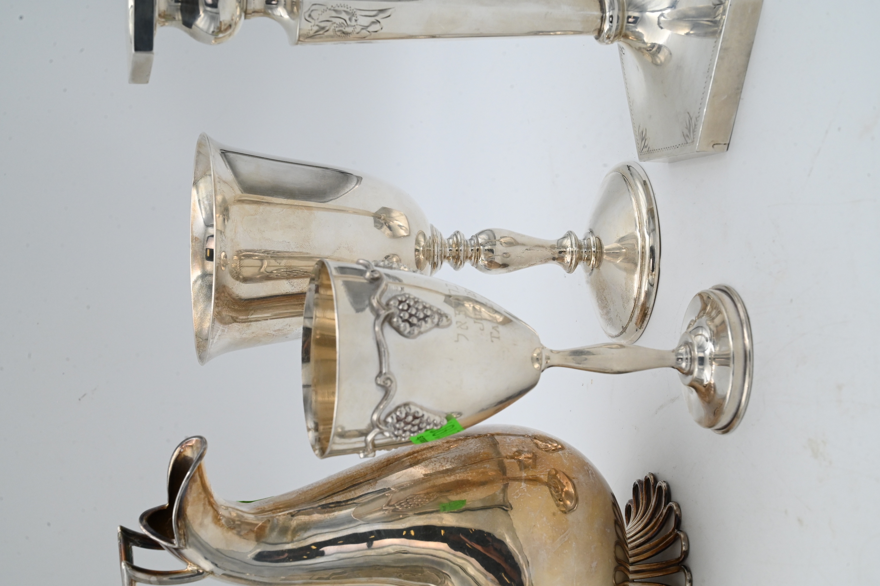 to include a pair of candlesticks, four wine goblets, and one Peruvian modern pitcher