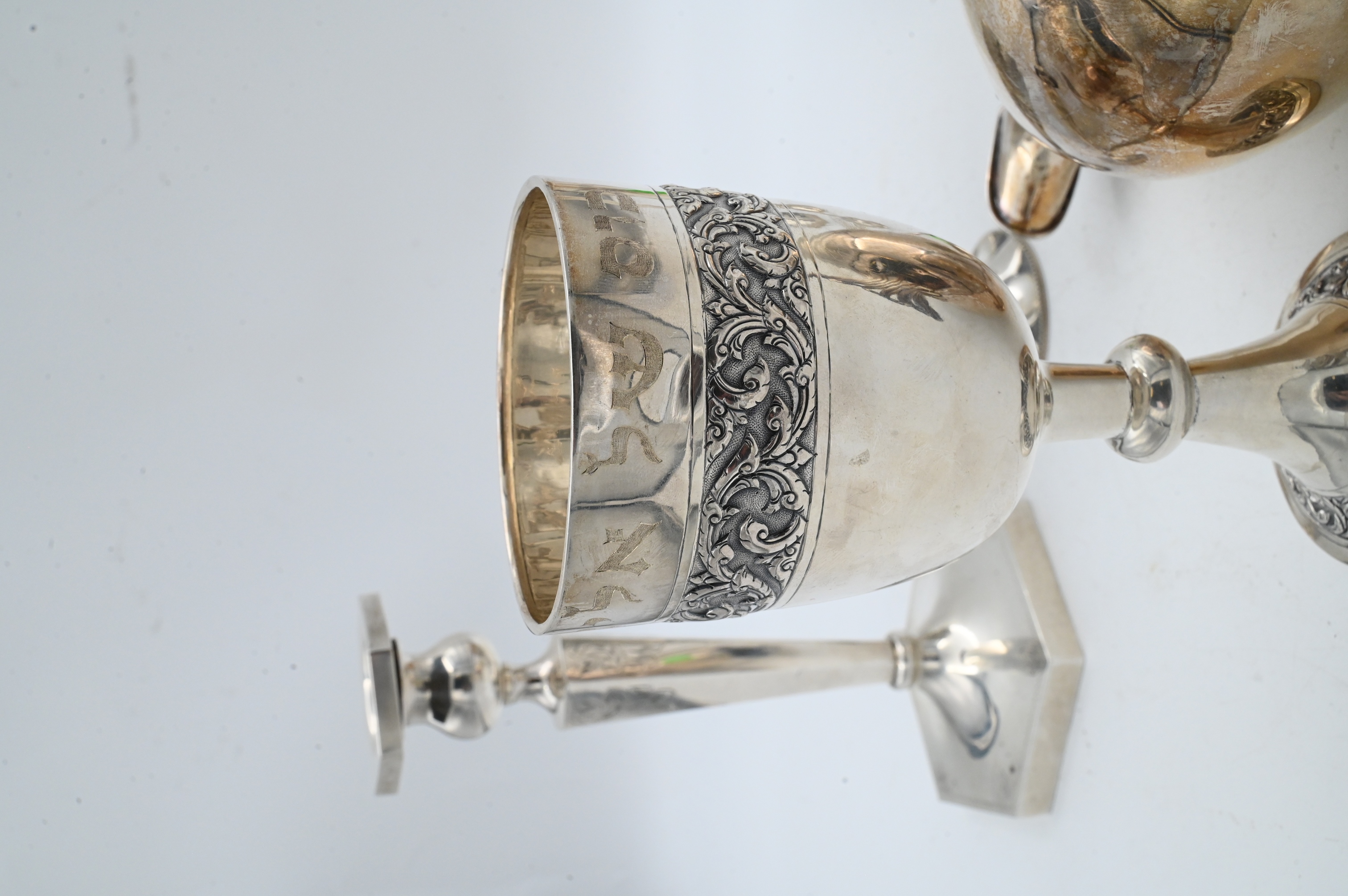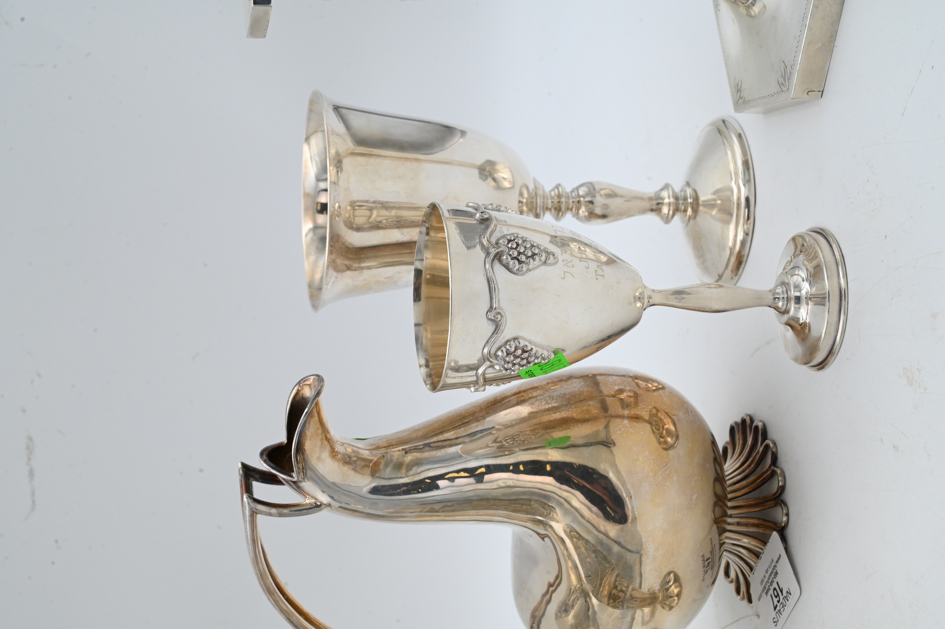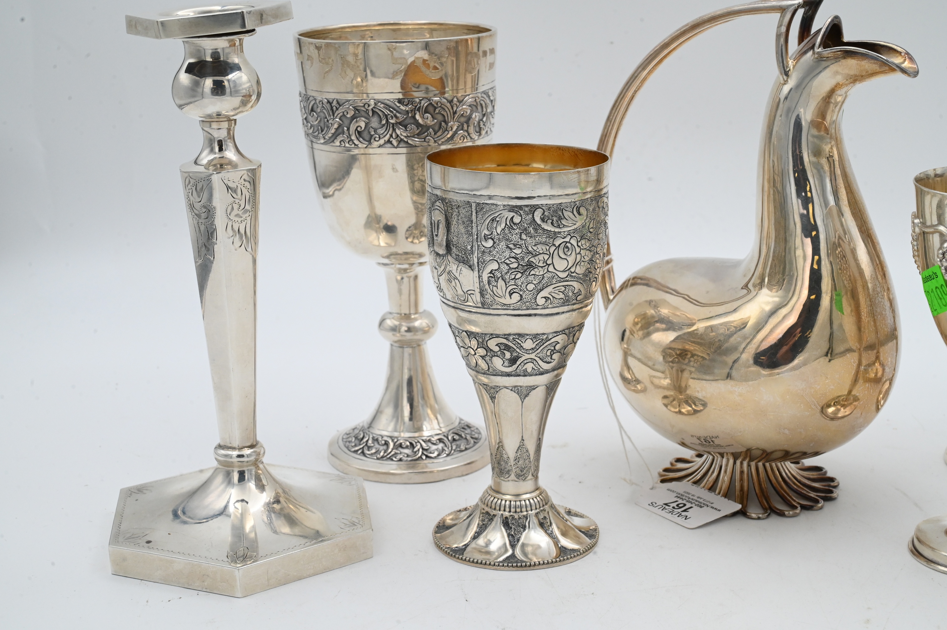 to include a pair of candlesticks, four wine goblets, and one Peruvian modern pitcher