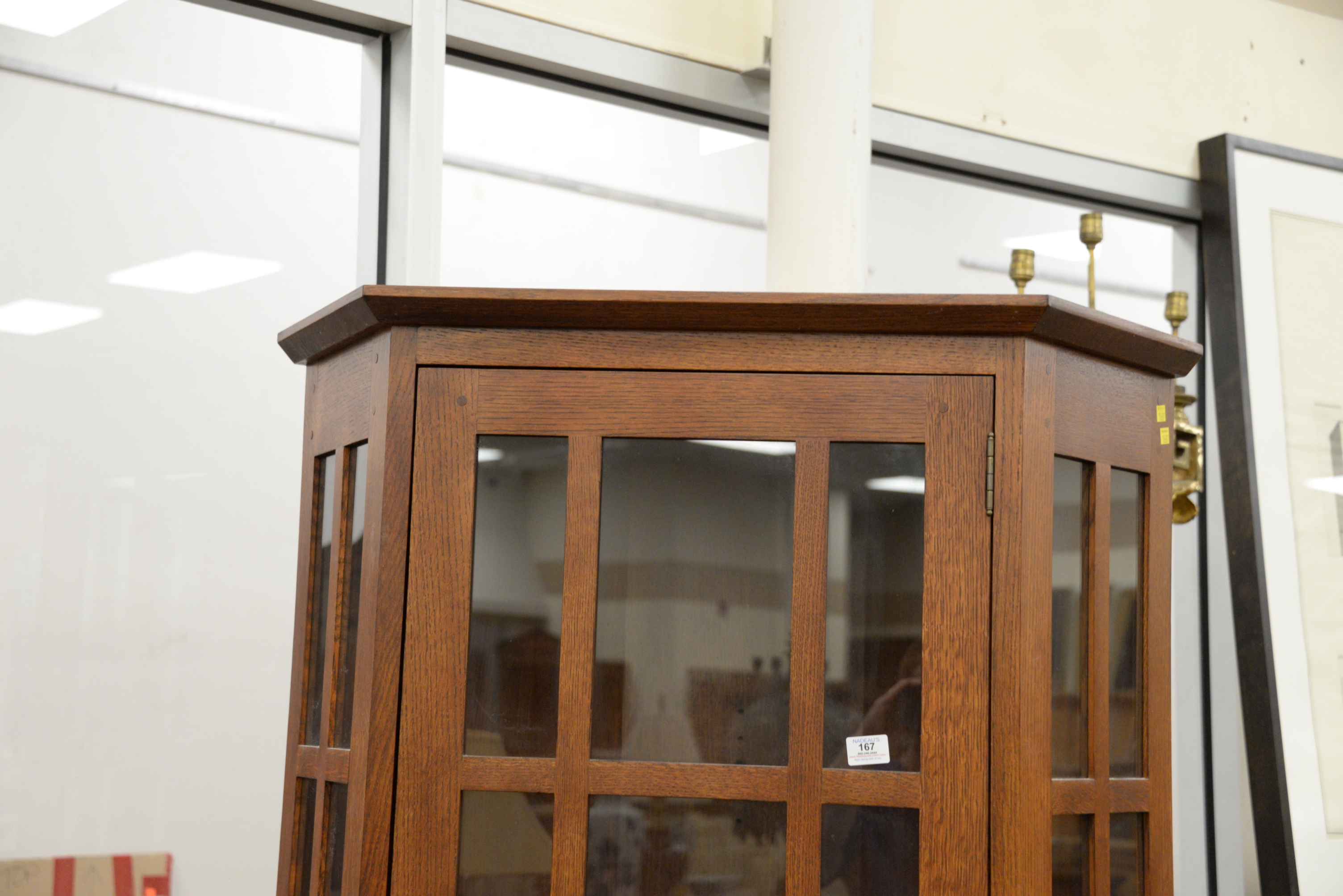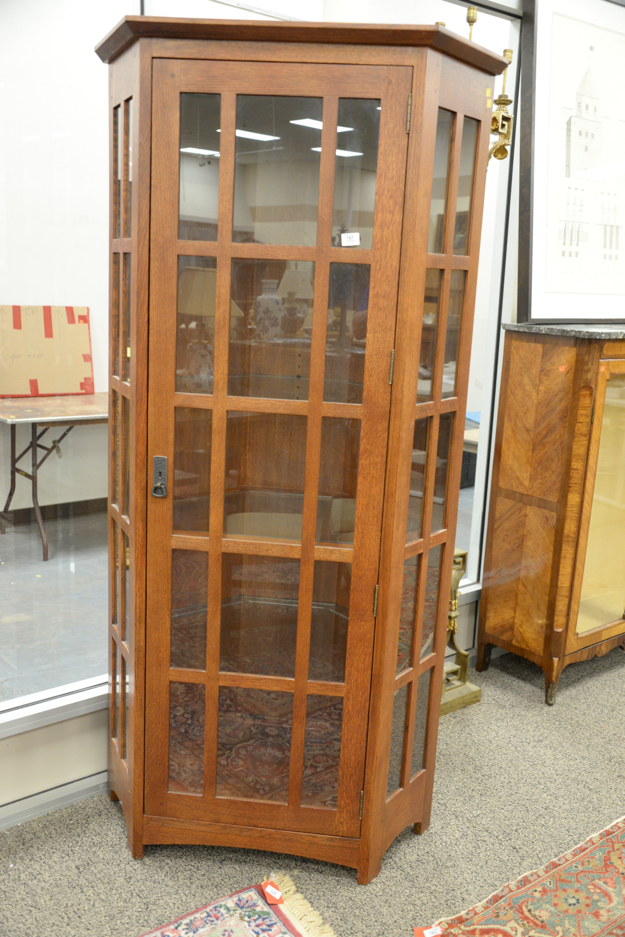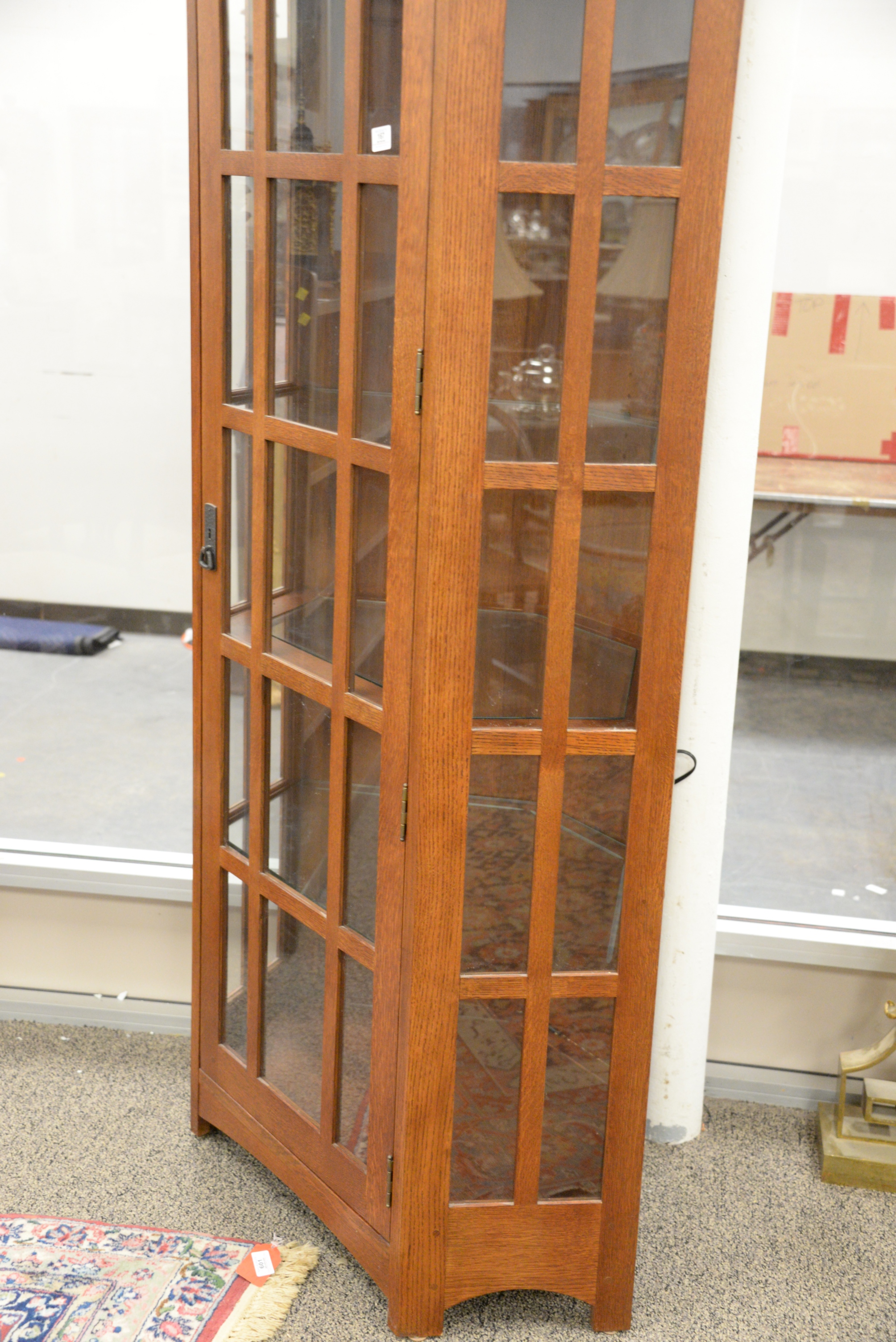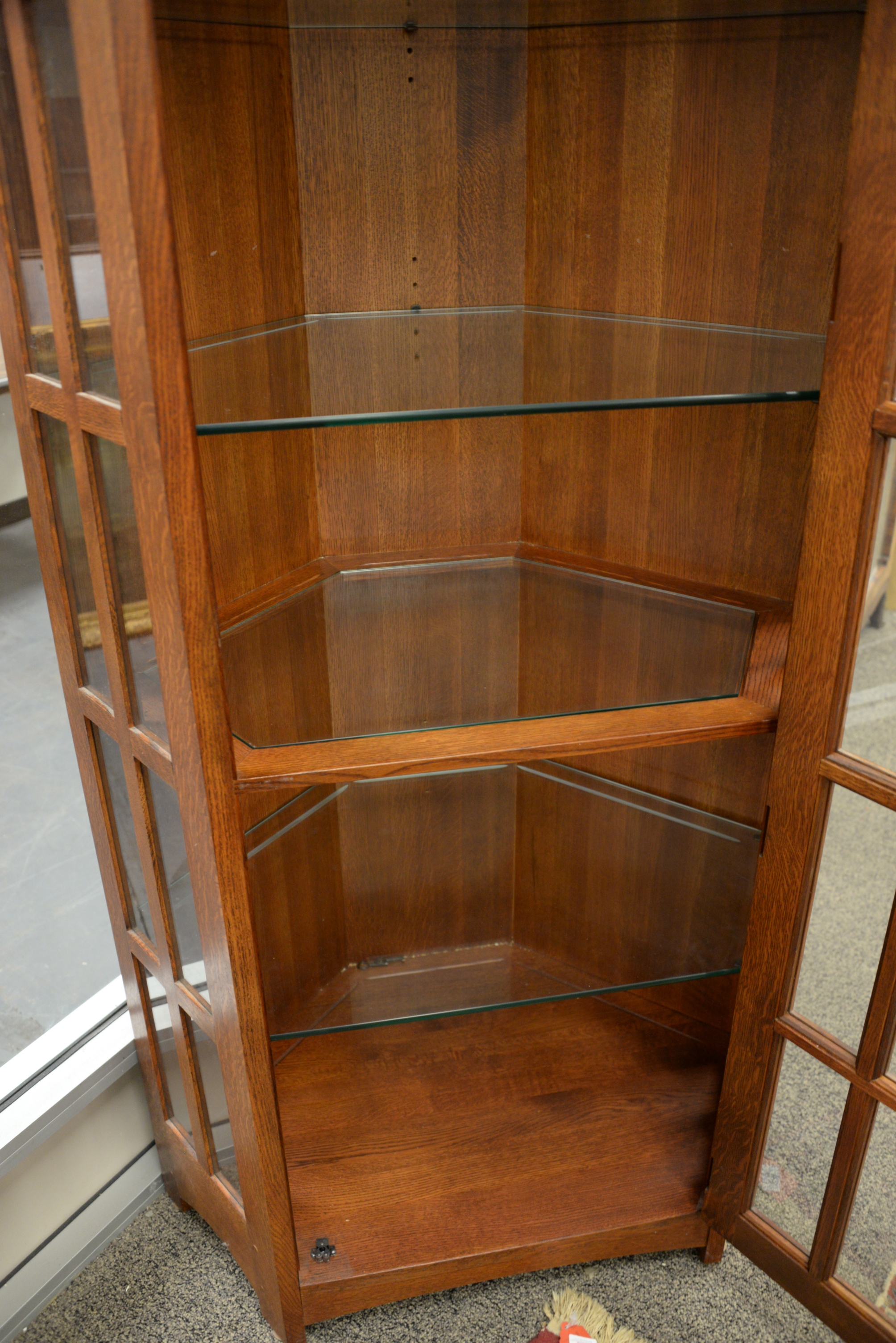 Lot 167: Stickley Lighted Mission Oak Corner Cabinet
