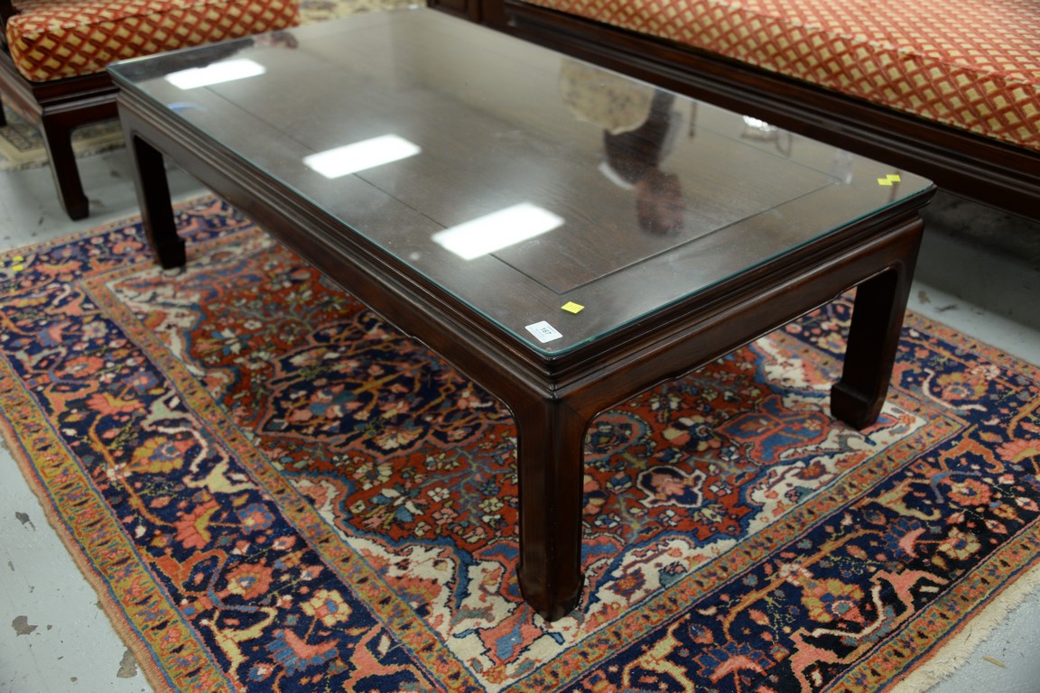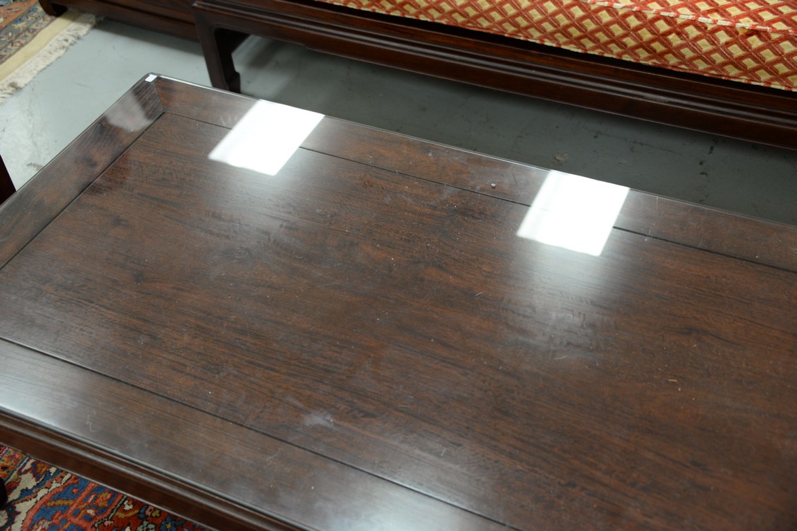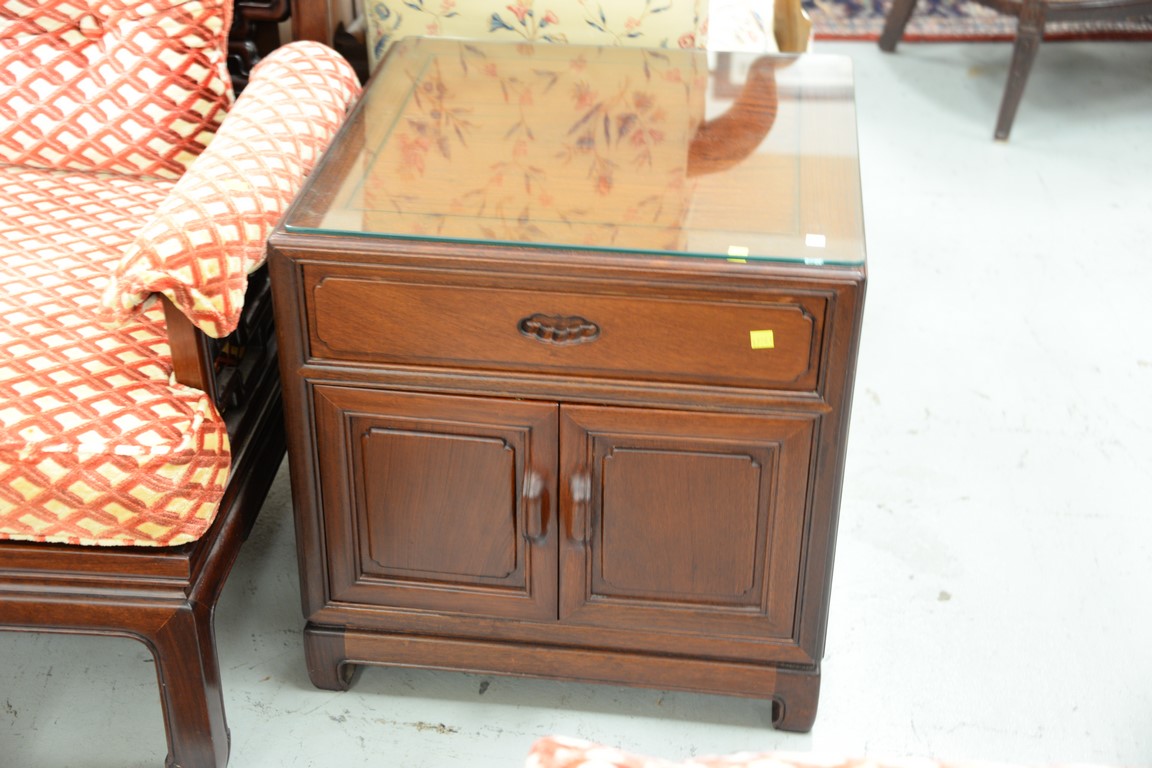 Lot 167: Three Chinese tables including a coffee table and two side tables with drawers and doors. coffee table: ht. 16 in. top: 27 1/2 x 1…