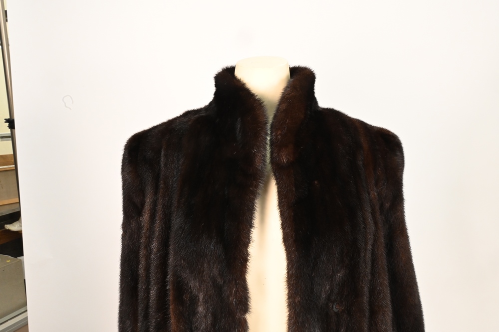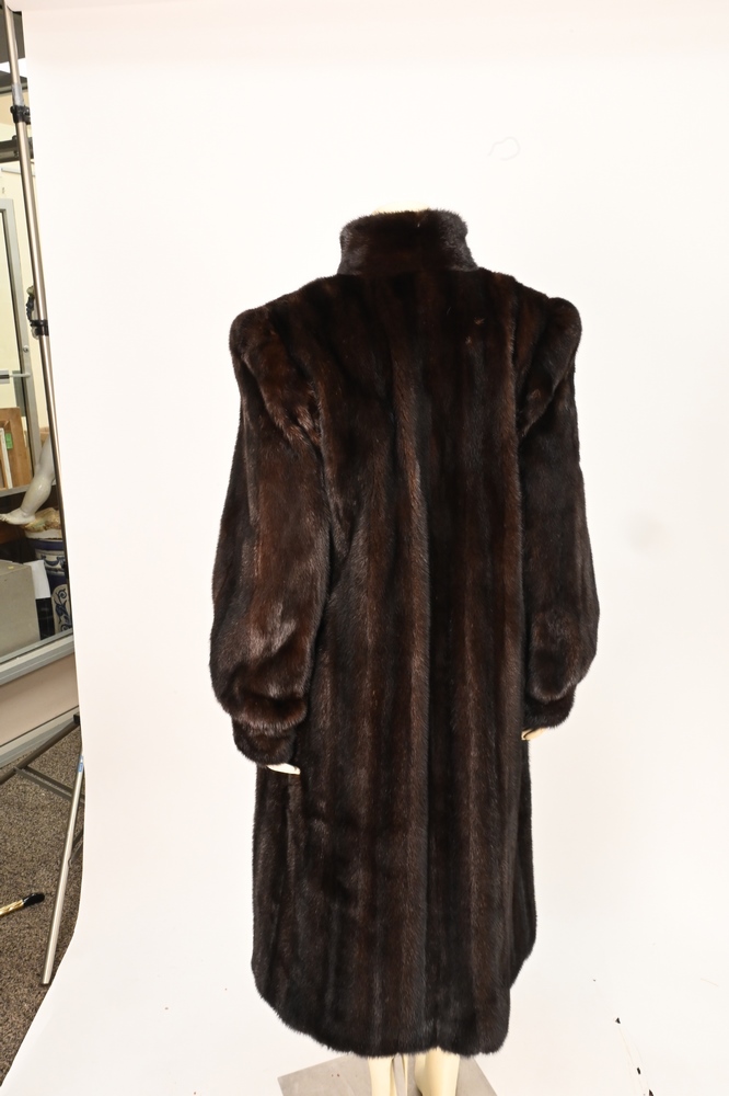 Lot 168: Brown Mink Full Length Coat, B. Smith and Sons, NY, having small stand up collar, banded cuffs and front slip pockets, fur is supple…
