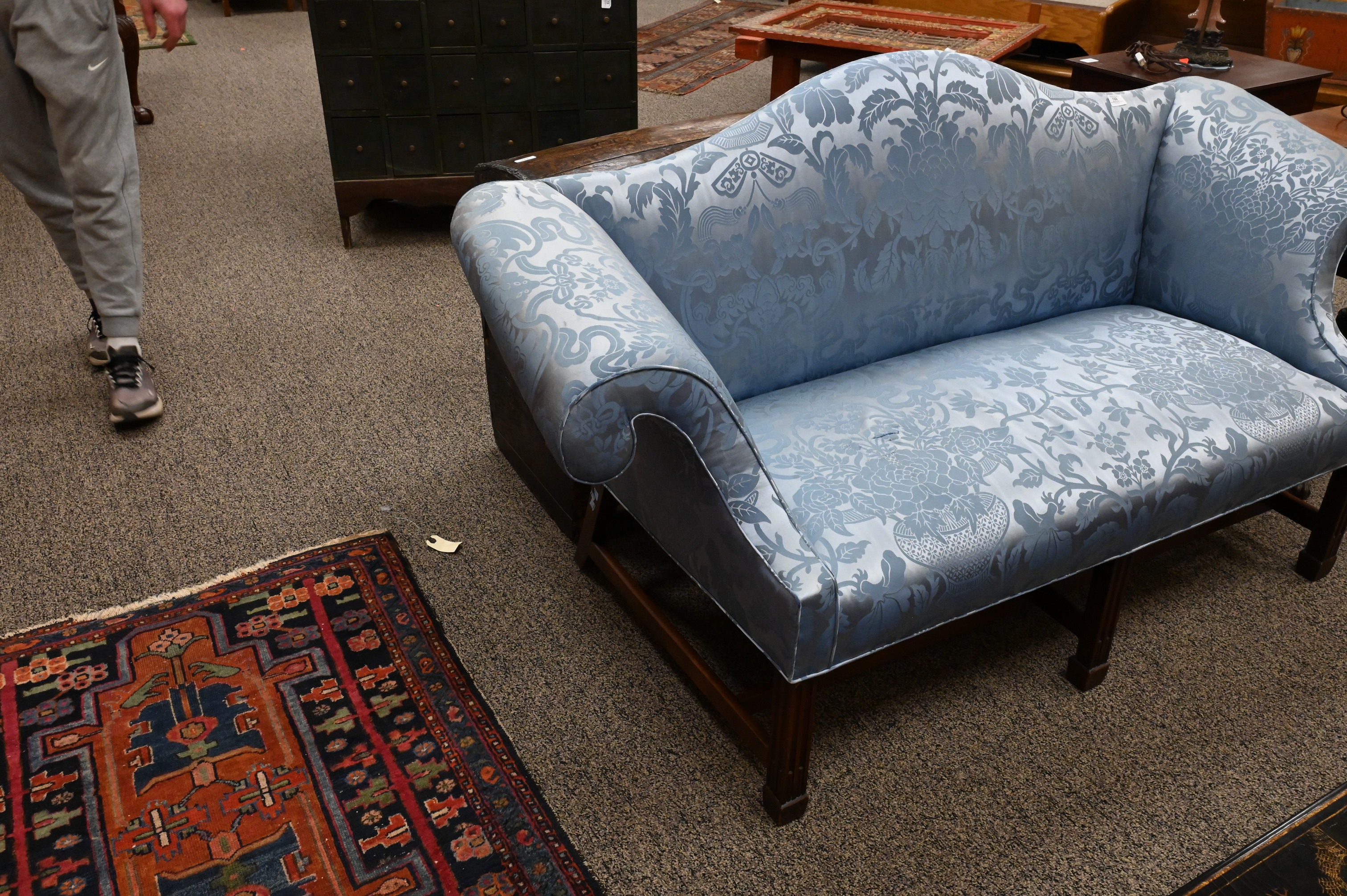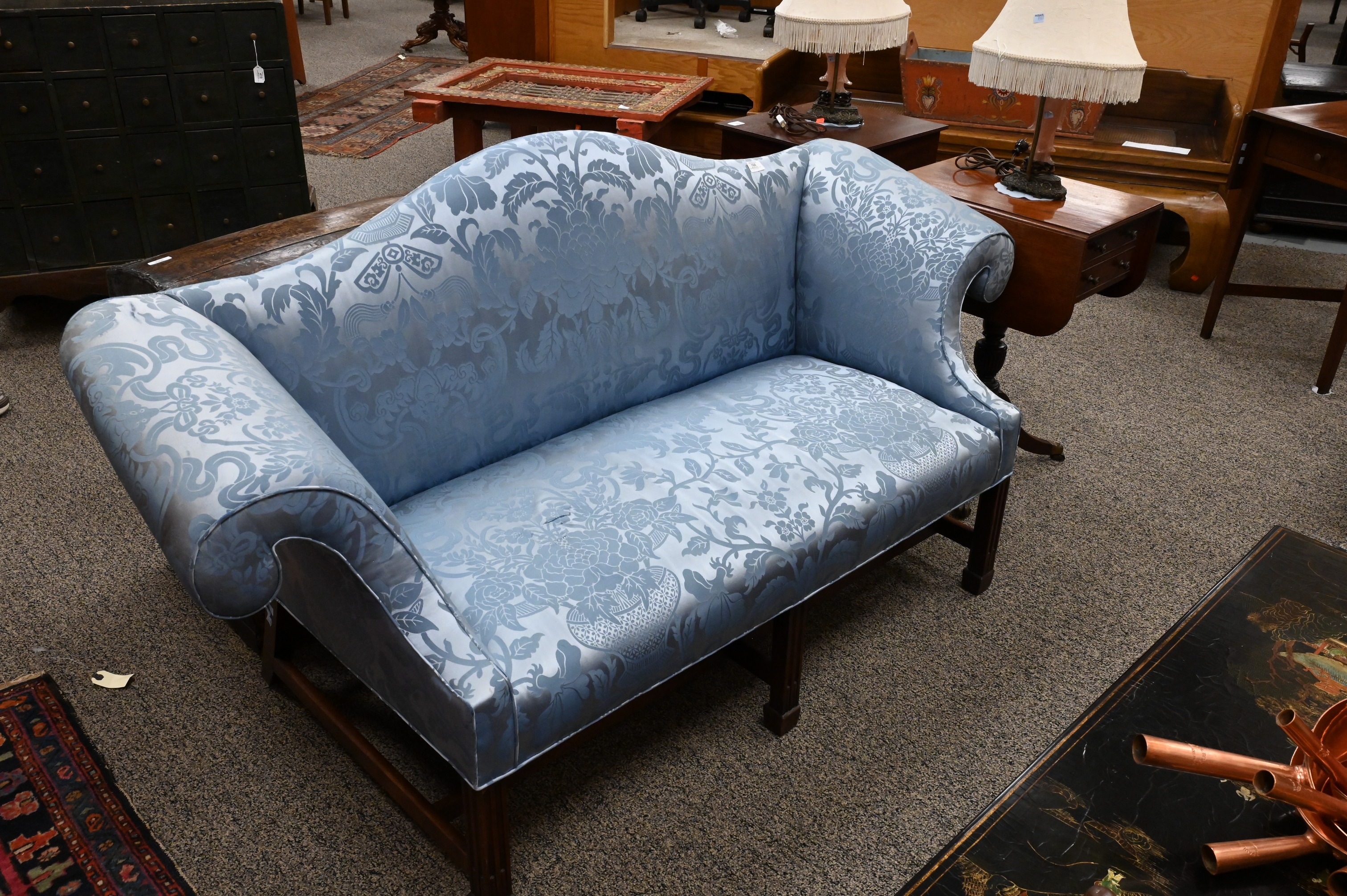 Lot 168: English Chippendale Upholstered Camel Back Loveseat