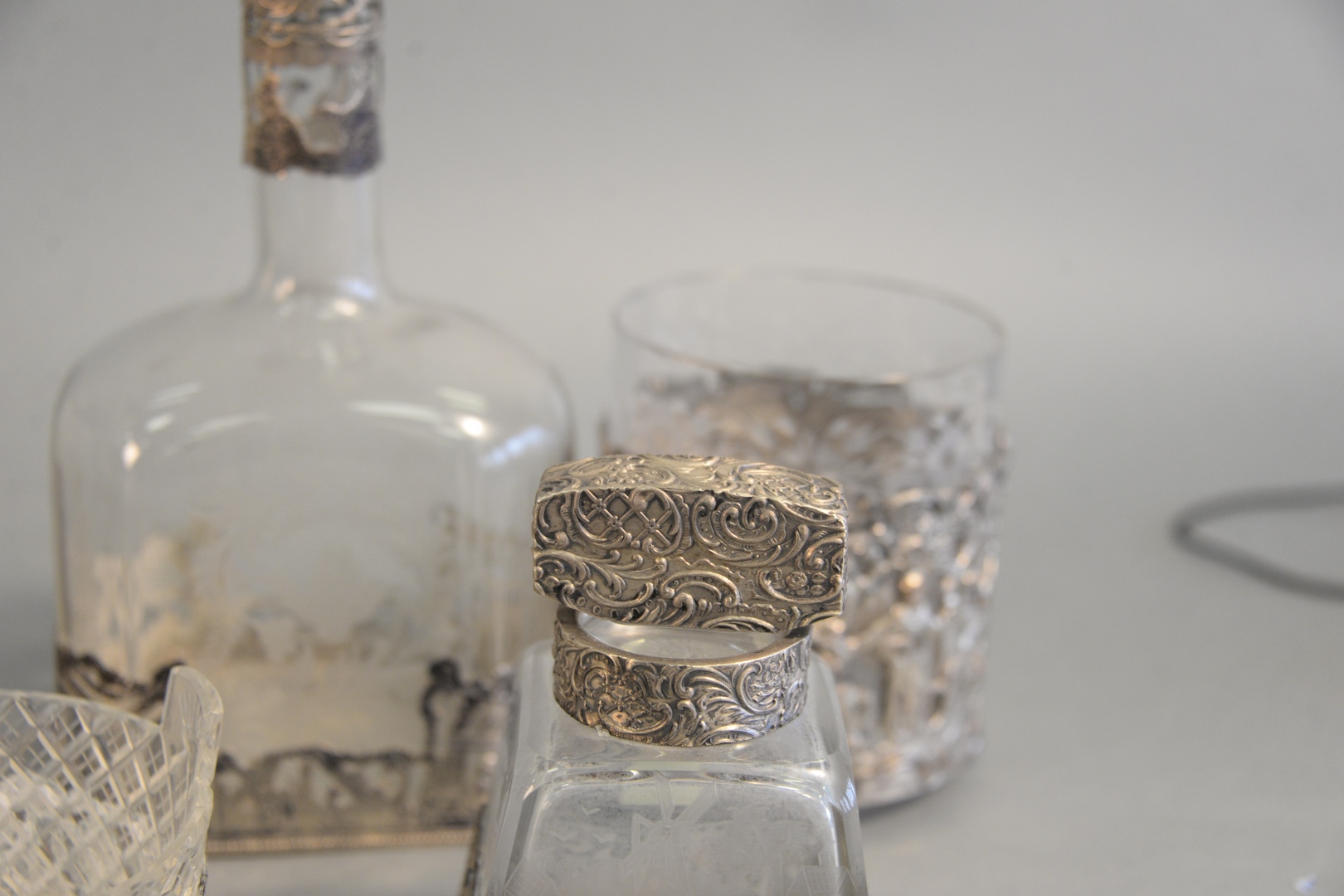 Lot 168: Five Piece Lot crystal with Continental silver mounts one stopper missing, one cracked glass heights 3 inches to 11 inches Provena…
