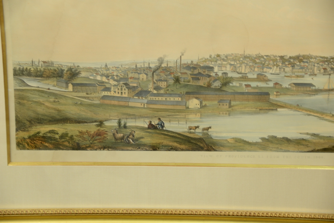 Lot 168: Handcolored lithograph View of Providence, R.I. From the South, 1849, from a drawing by E. Whitefield. waterstain. sight size 18…
