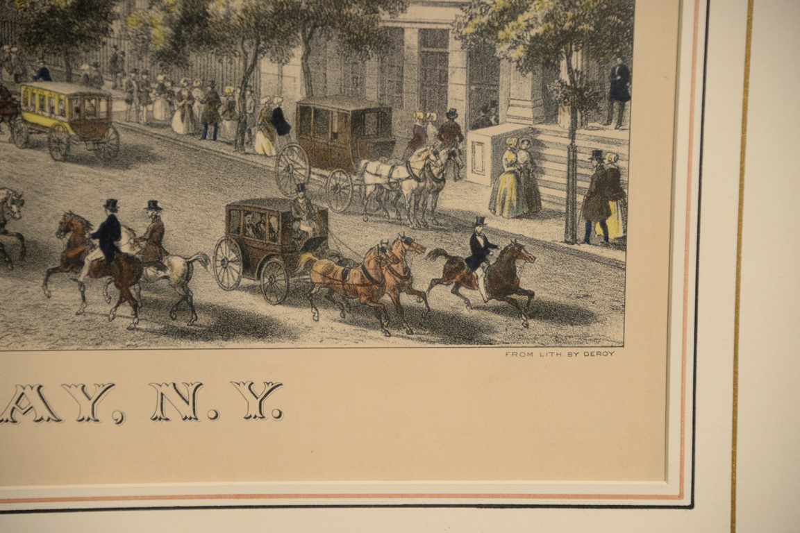 Lot 168: Isadore Laurent Deroy 1797-1886, hand colored lithograph, Drawn from Nature by Aug Kollner, Broadway, N.Y., 1848, Cityscape of New…