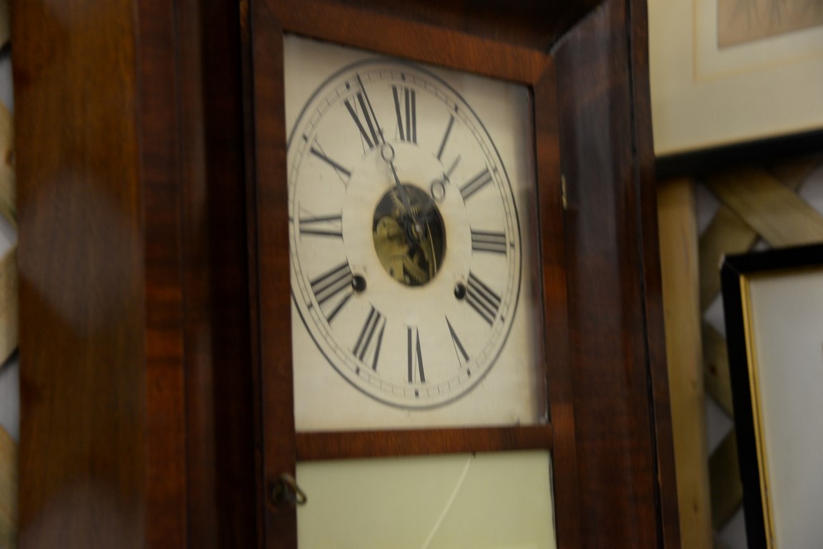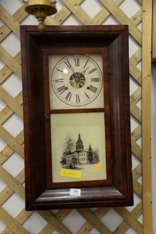 Lot 168: Mahogany ogee mantle clock with brass works, ht. 25 1/2 in.