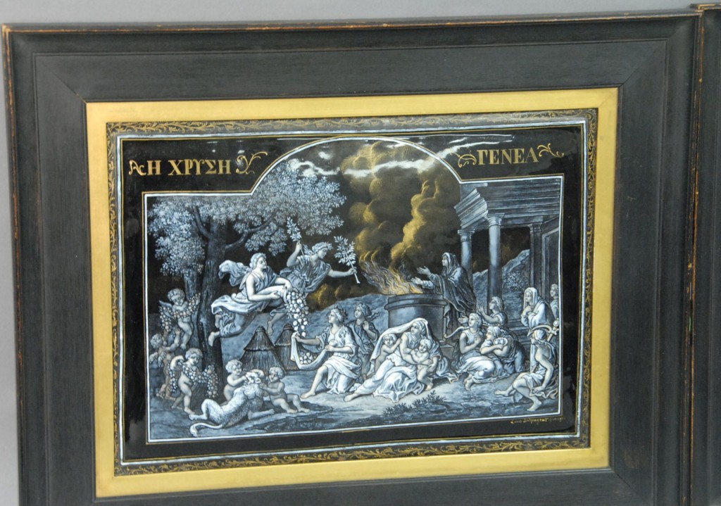 Pair of Limoges enameled plaques signed Louis Dalpayrat Limoges, both plaques having Classical landscape scenes. 9 1/4 x 13