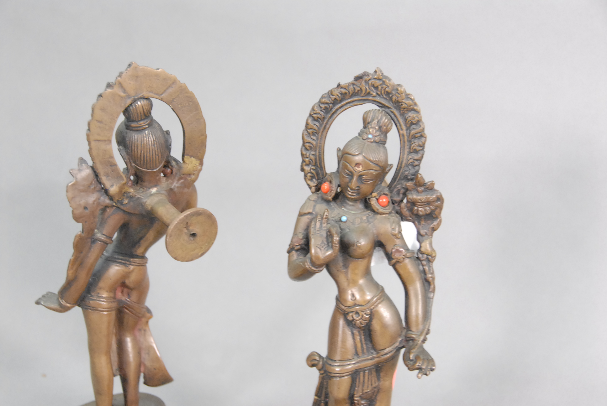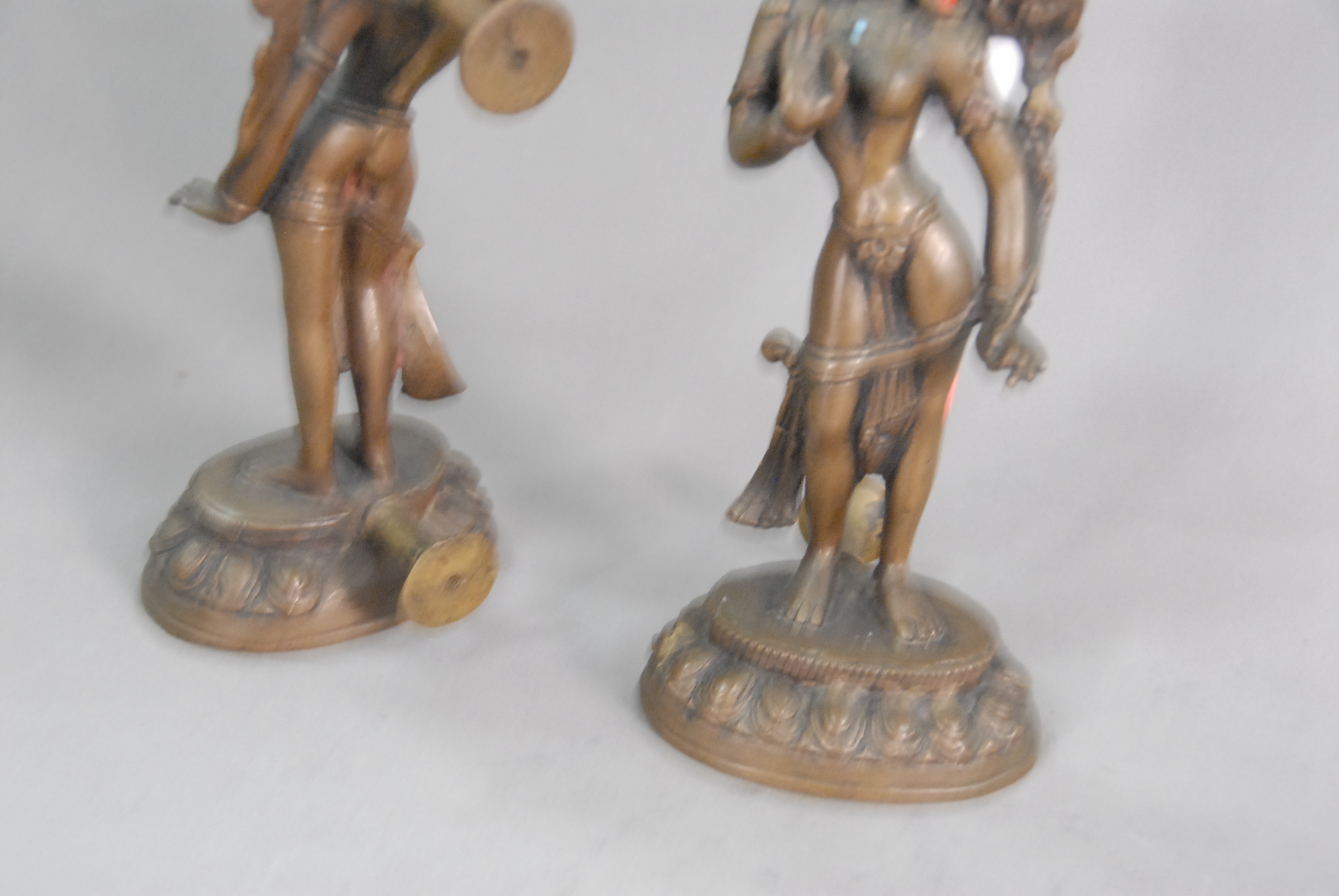 Two bronze standing Guanyins mounted with jewels made into door handles.
