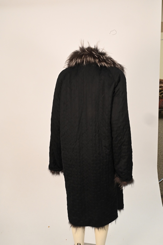 Lot 169: Black Fendi Quilted Fur Lined Coat, below knee length with long fur lining, button reads “Pellicce Moda Pronta”, button front closur…