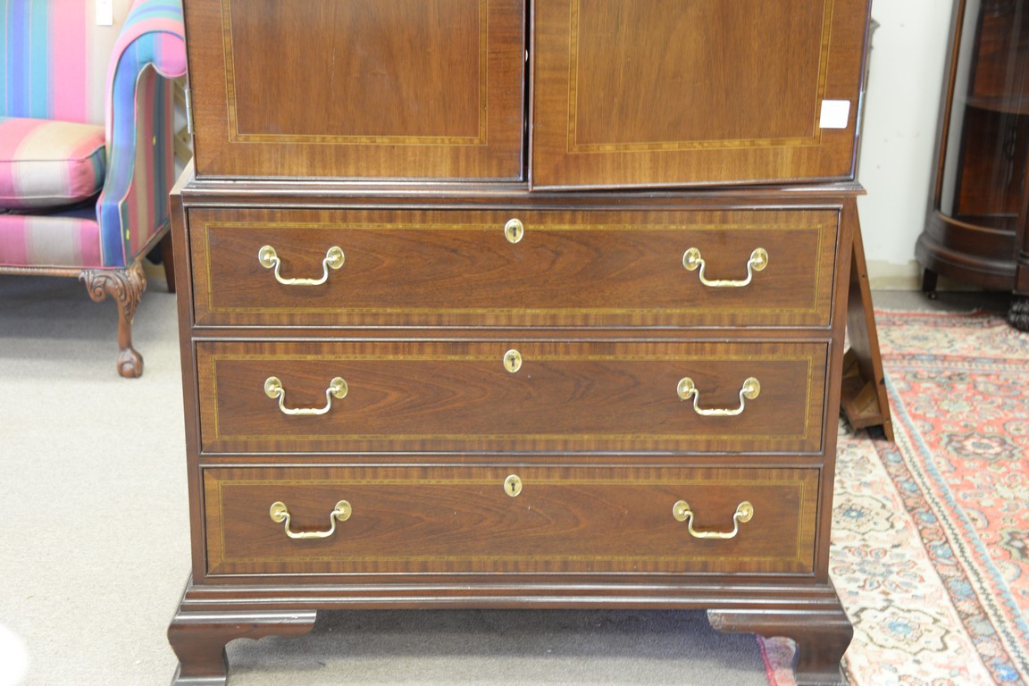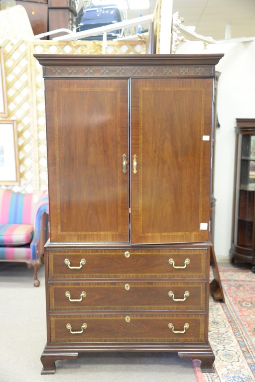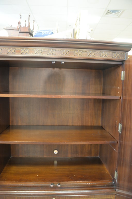 Council mahogany man’s chefferobe with shelved top. ht. 77in., wd. 40 1/2in., dp. 21in.