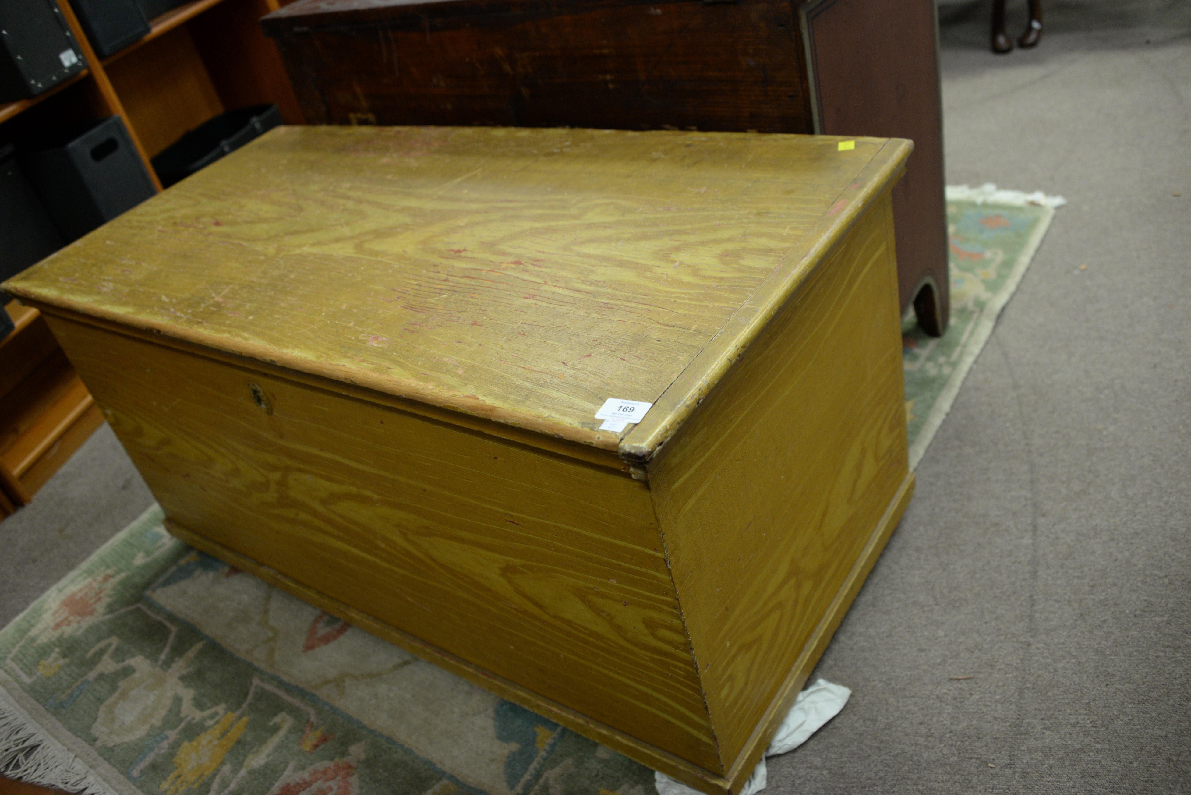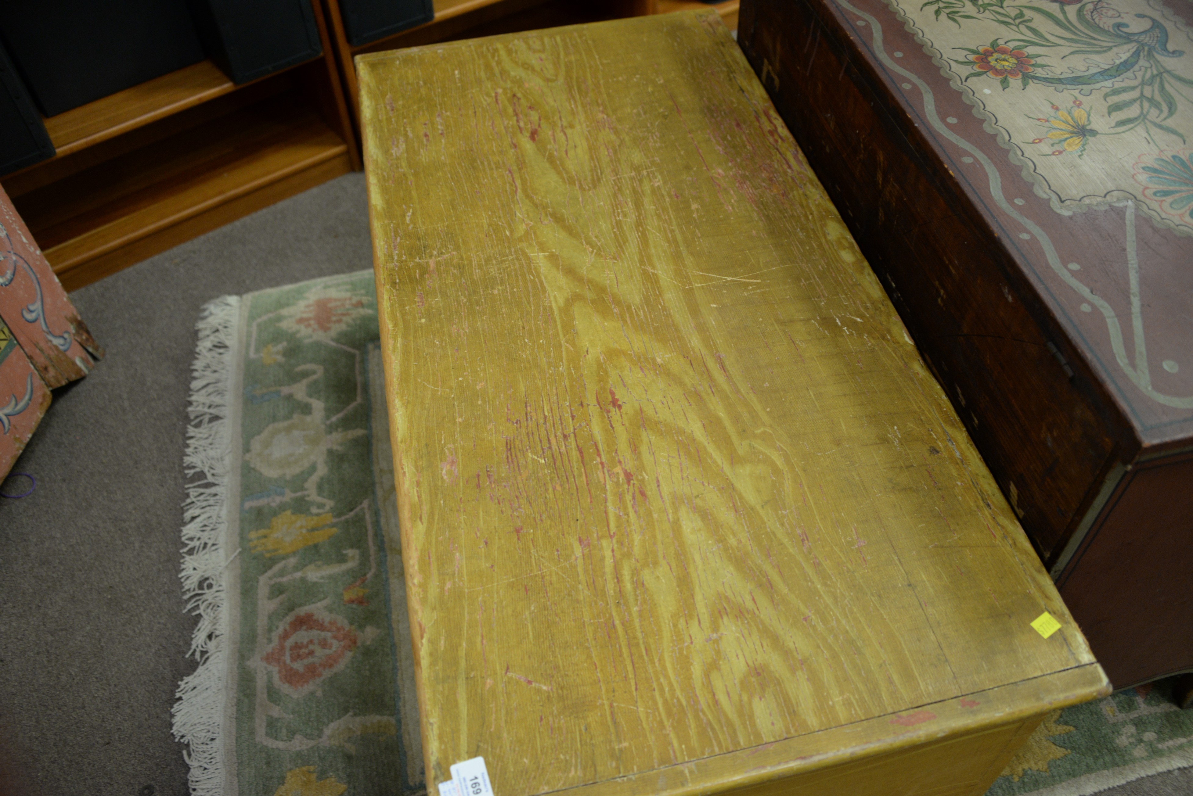 Lift top blanket chest with original grain paint. ht. 21 in. wd. 44 in.