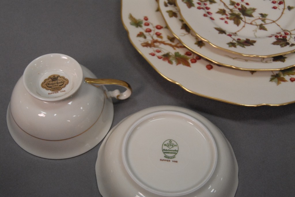 Royal York summer vine dinnerware setting for twelve, 109 total pieces.
