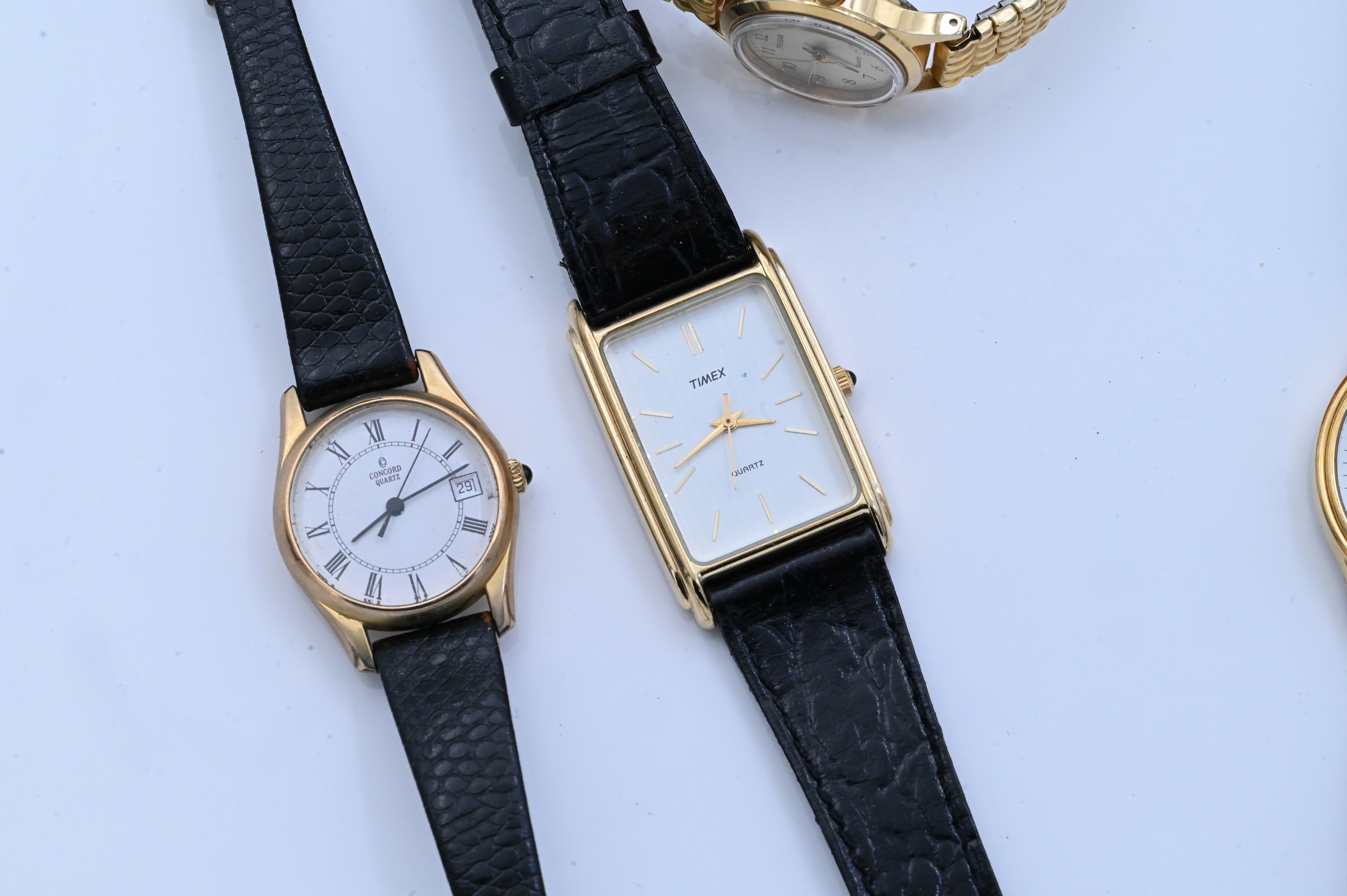 to include Longines with case, Alfred Hammel, Bucherer, Timex, Concord, and 18K electroplated Mizar