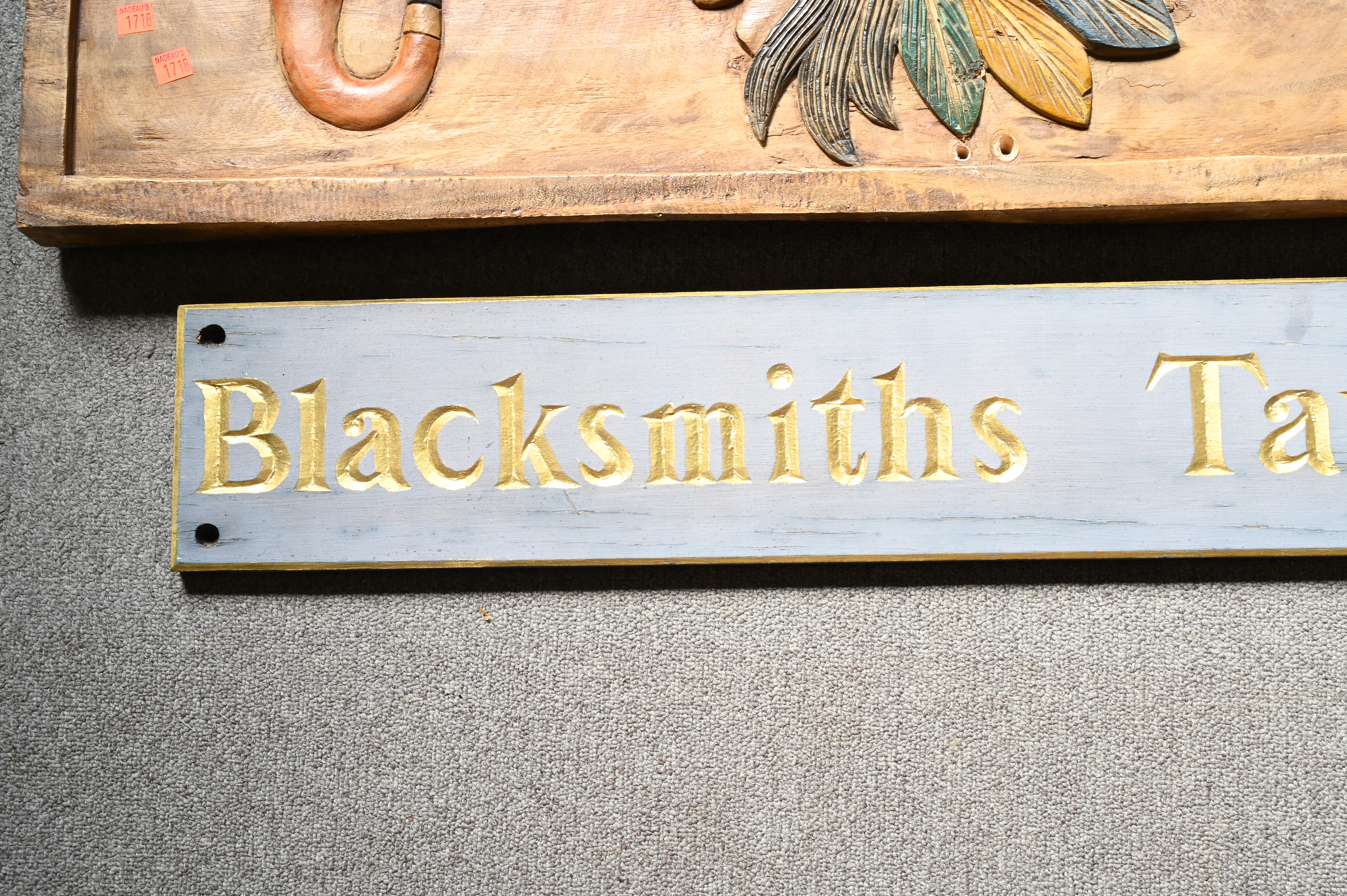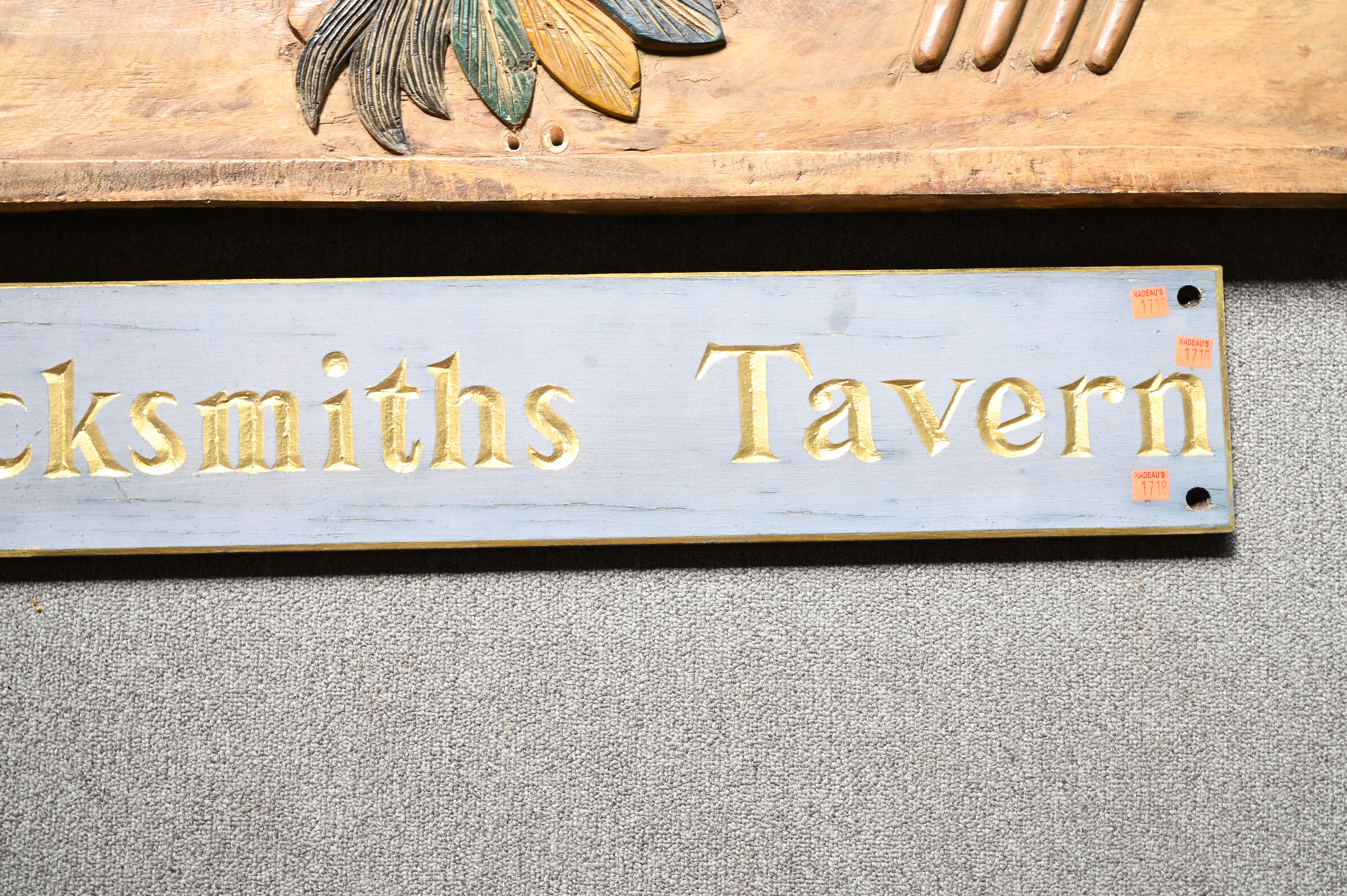 Lot 169: Three Carved Wood and Paint Decorated Signs