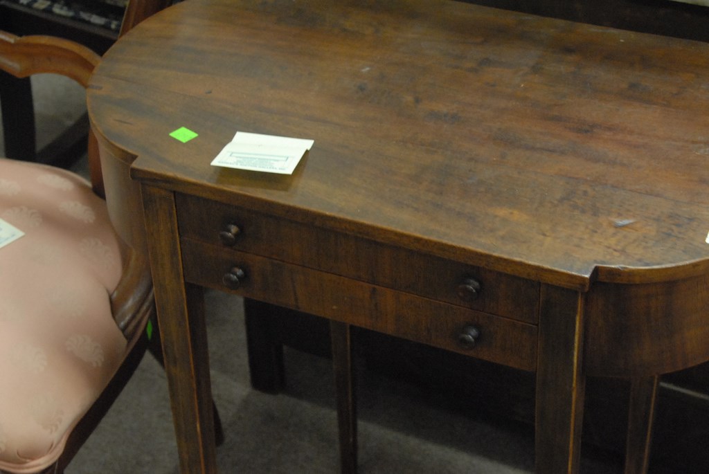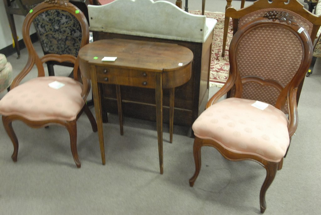 Three piece lot: two Victorian side chairs and small one drawer stand.