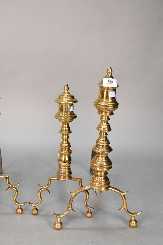 Lot 169: Two Pairs of Connecticut Federal Brass Andirons, having scrolled legs on ball feet, height 16 inches, 18 1/4 inches.