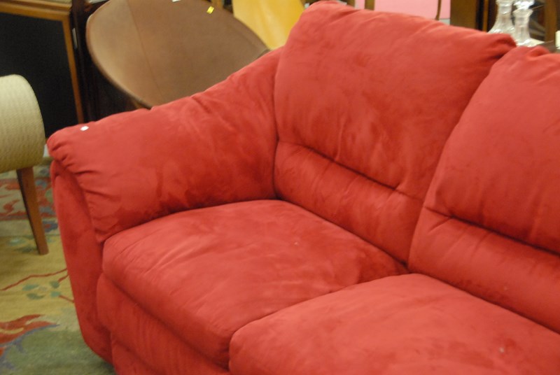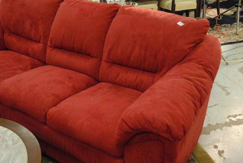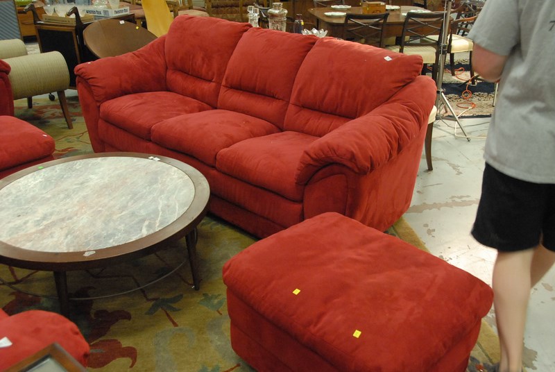 Two piece family room set including sofa lg. 90in. and ottoman in rose red.