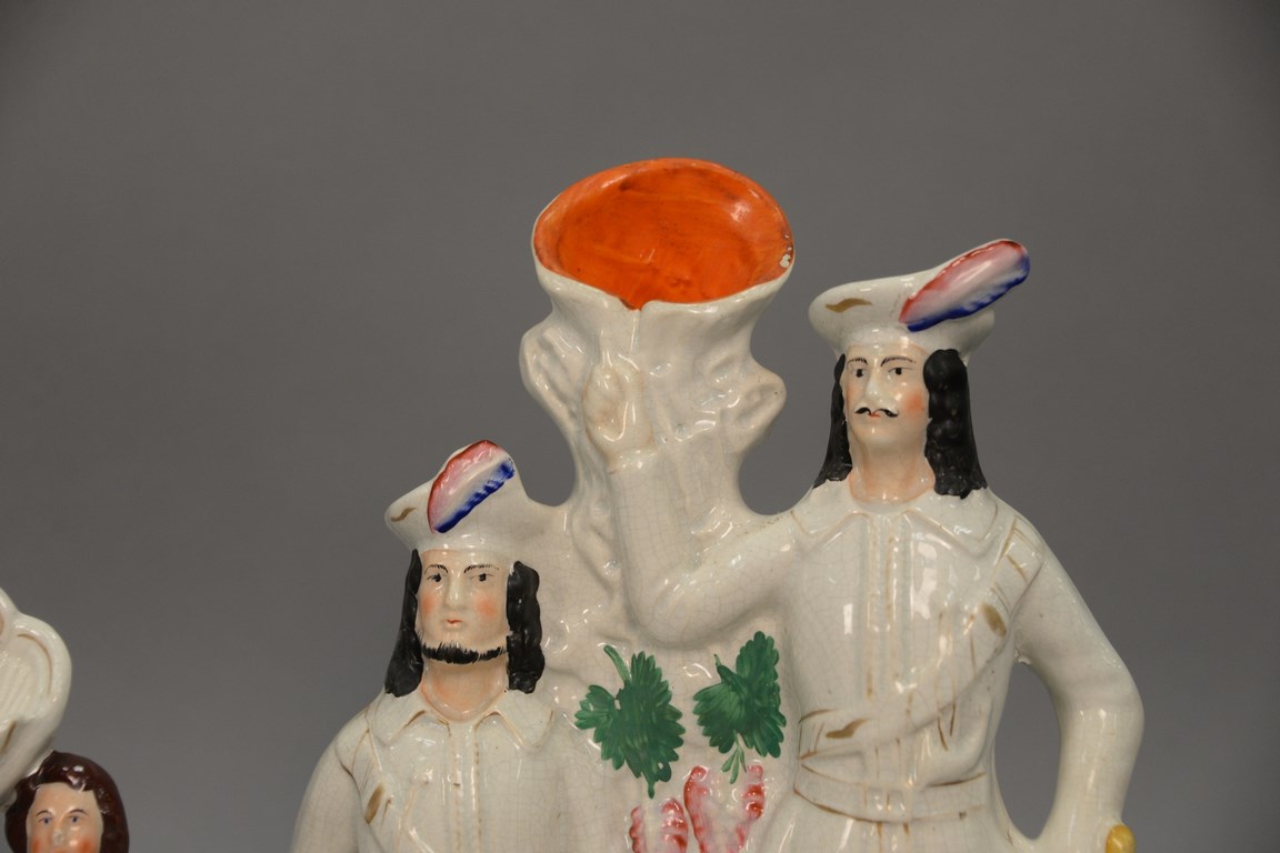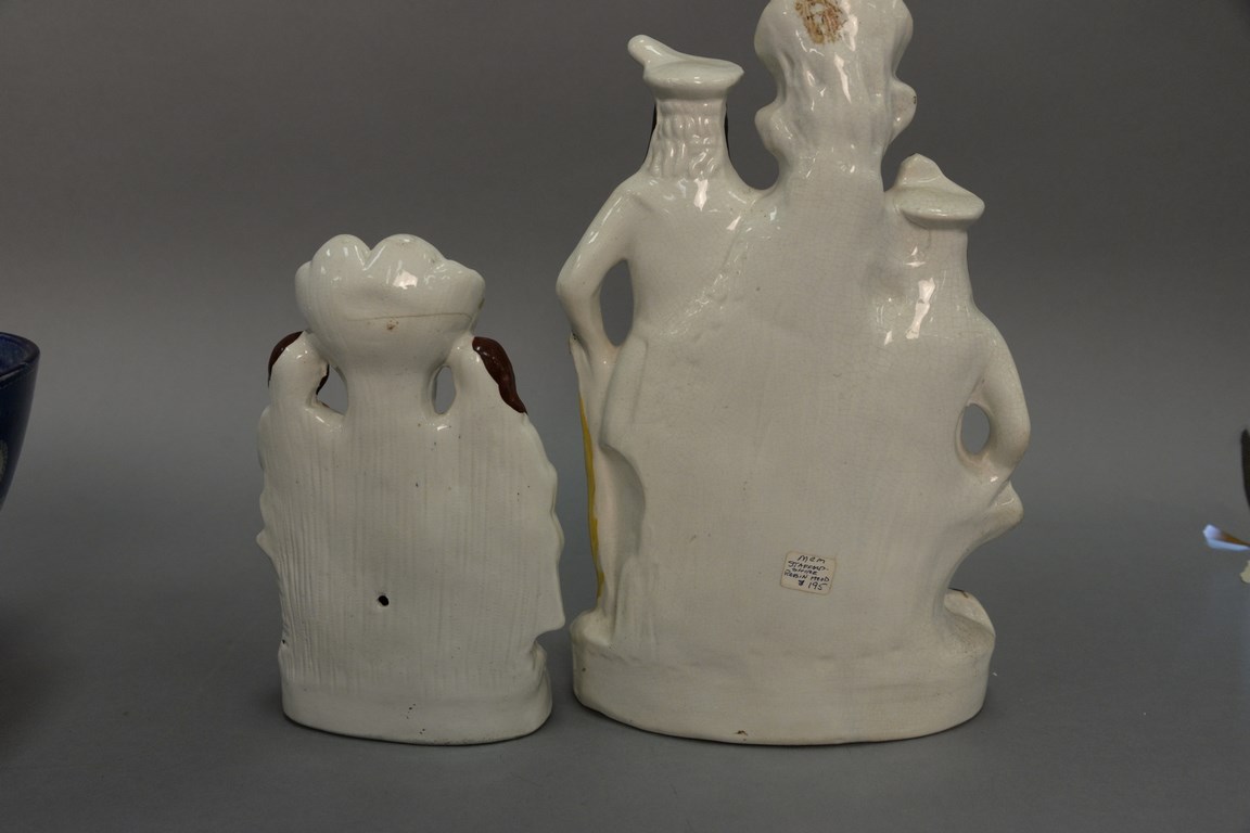Two Staffordshire double figure vases, Robinhood. ht. 10 1/2 in. and ht. 15 in.