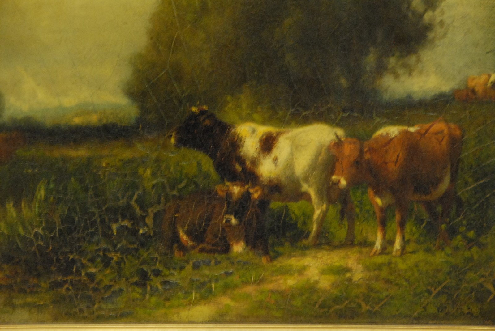 Lot 169: William Howard Hart 1863-1937 FARM LANDSCAPE WITH COWS oil on canvas signed lower right W. Hart 12 x 16