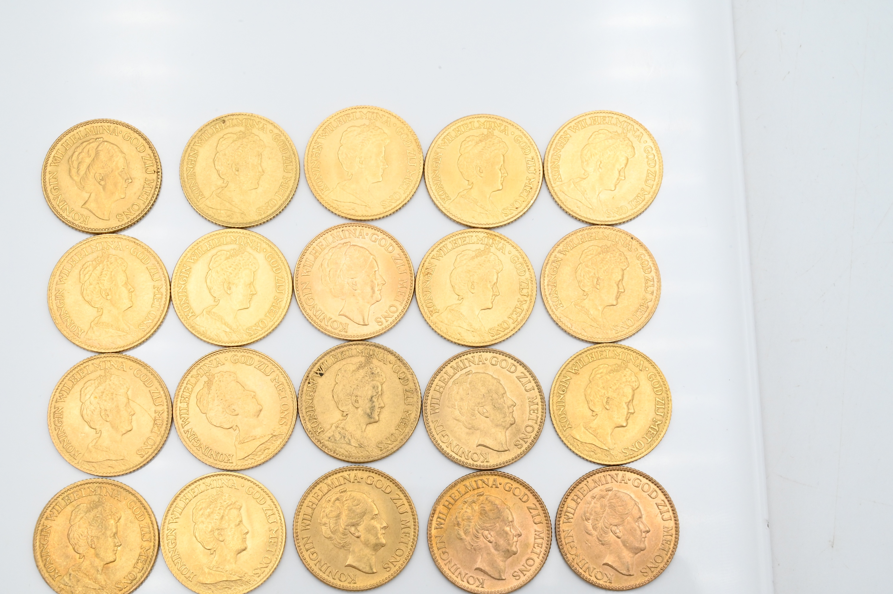 20 Dutch 10 Guilders Uncirculated Gold Coins, 134.4 grams