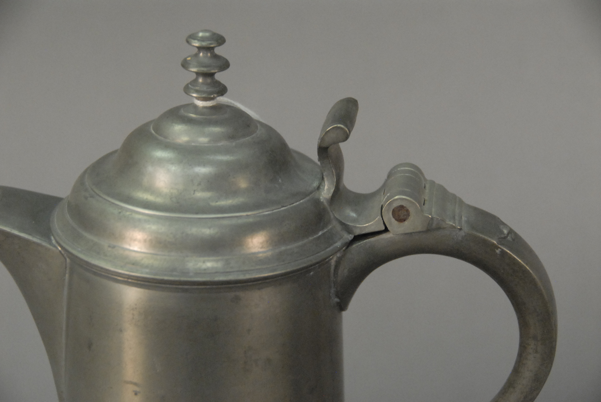 Pewter lighthouse style flagon, attributed to Thomas Boardman, Hartford. ht. 12 1/2 in.