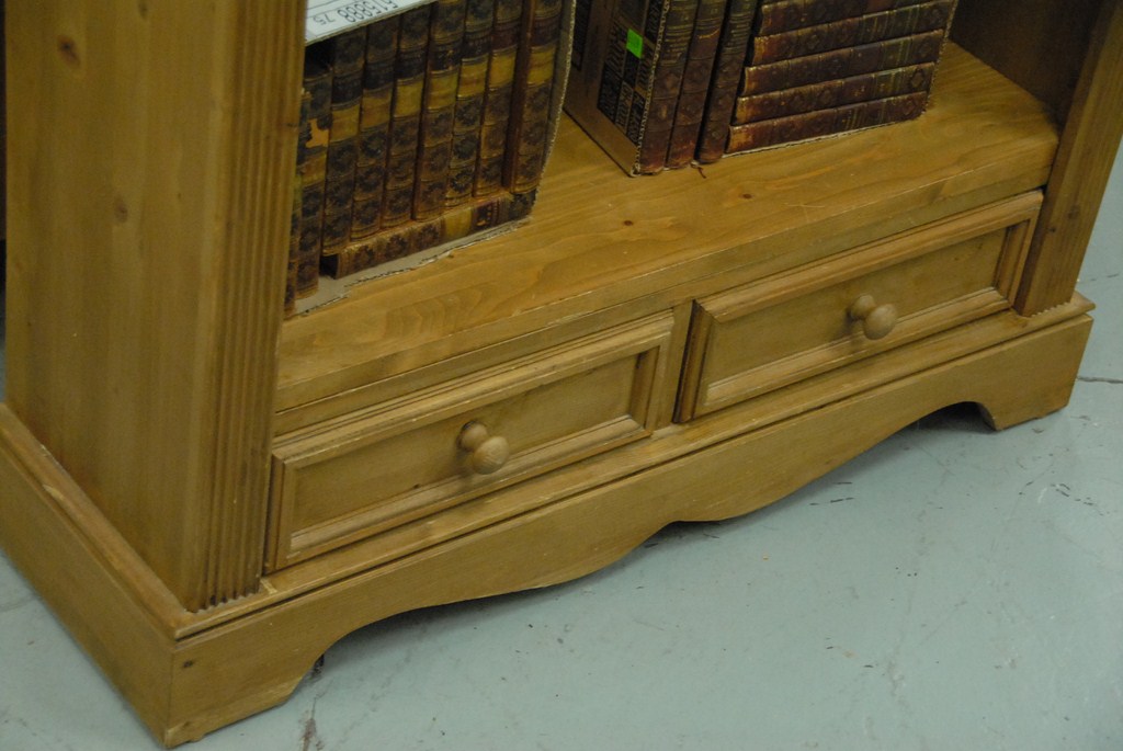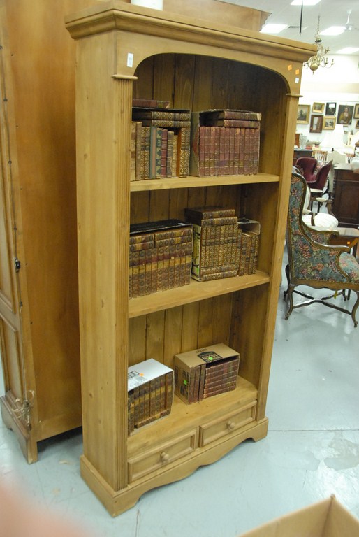 Pine bookcase with drawer in base, ht. 75in. wd. 38 1/2in.