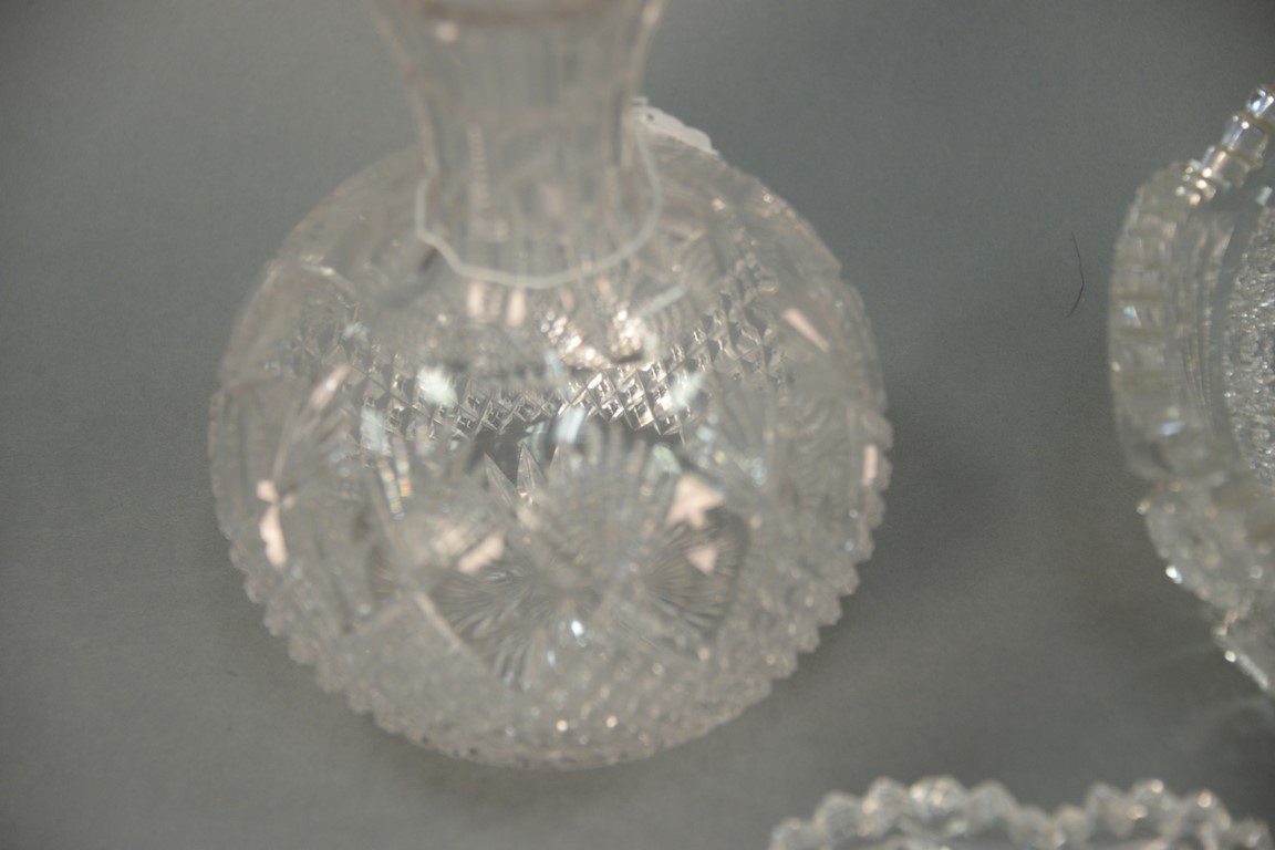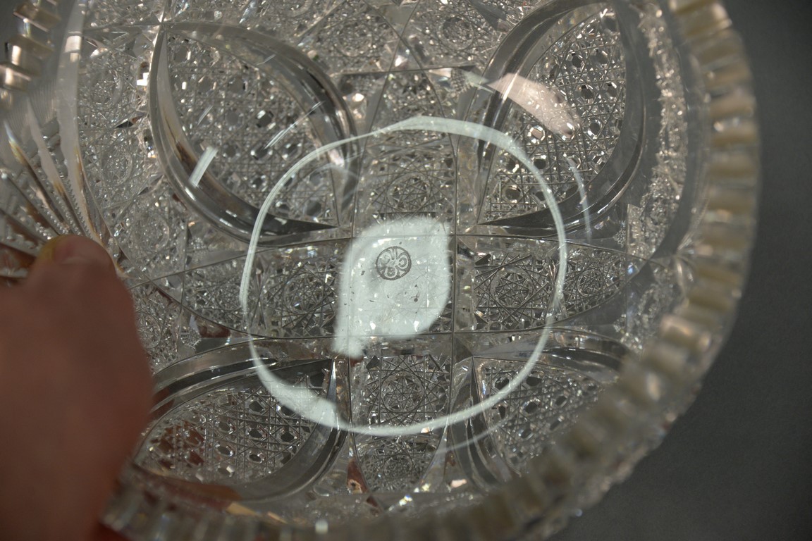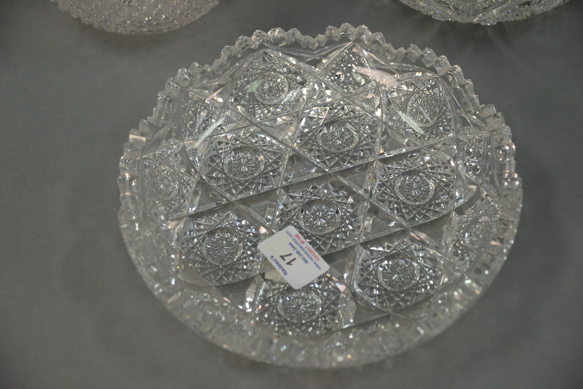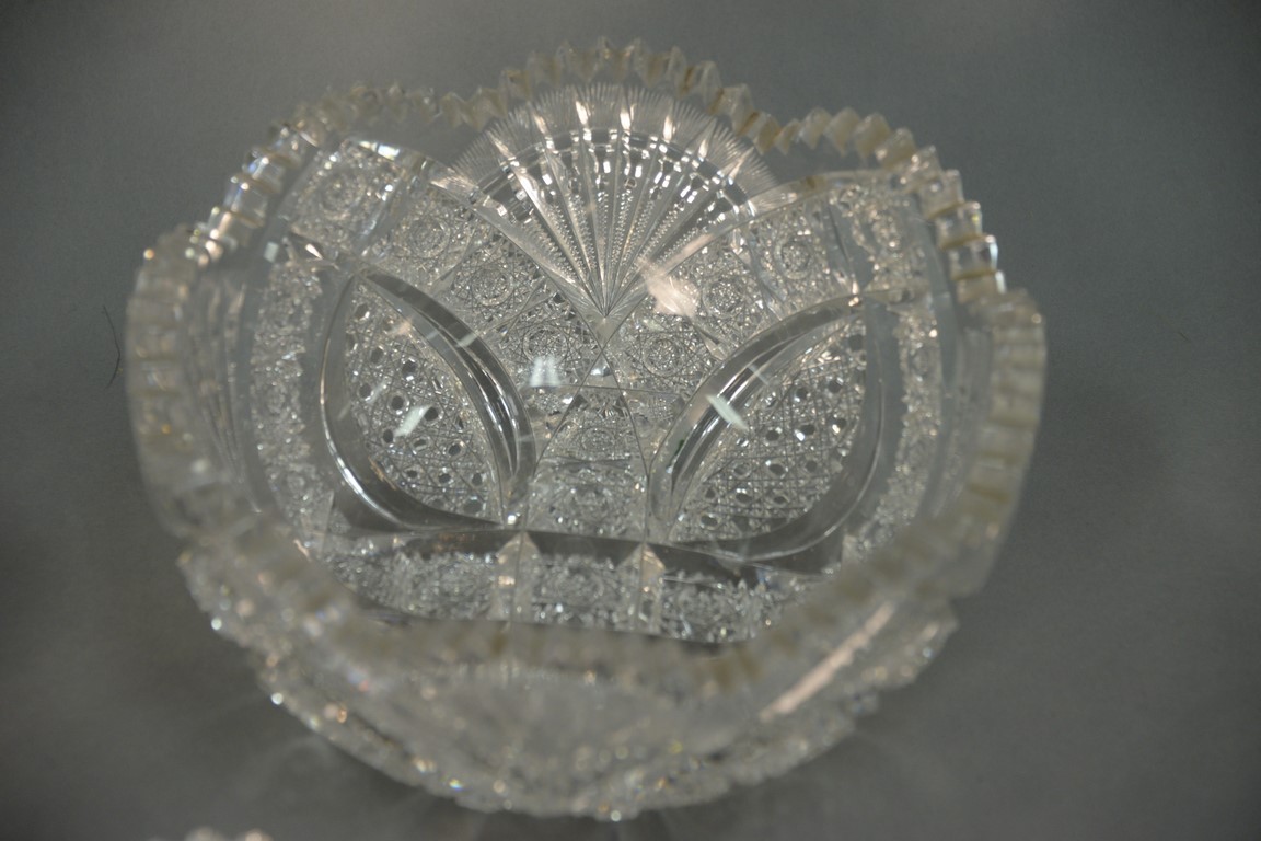 Lot 17: Three cut glass pieces to include Gundy Clapperton cut glass bowl having shamrock mark with C.G. Co. inside ht. 3 3/4in., 7 3/4in….