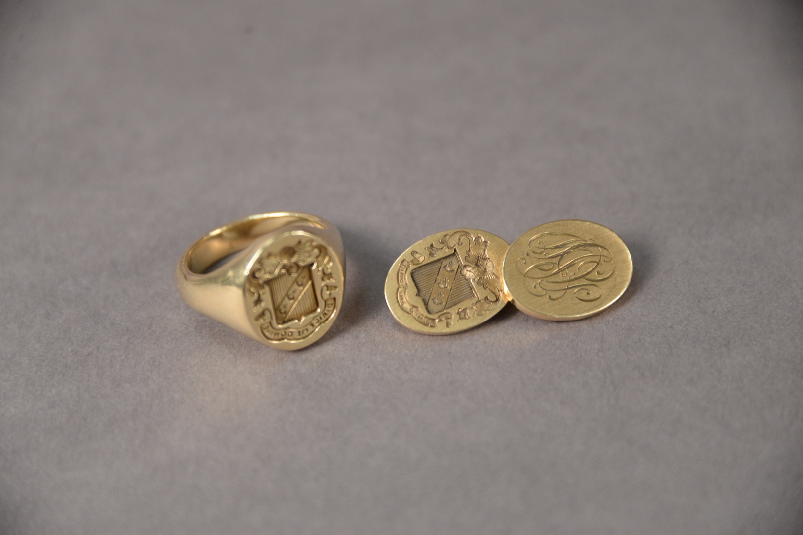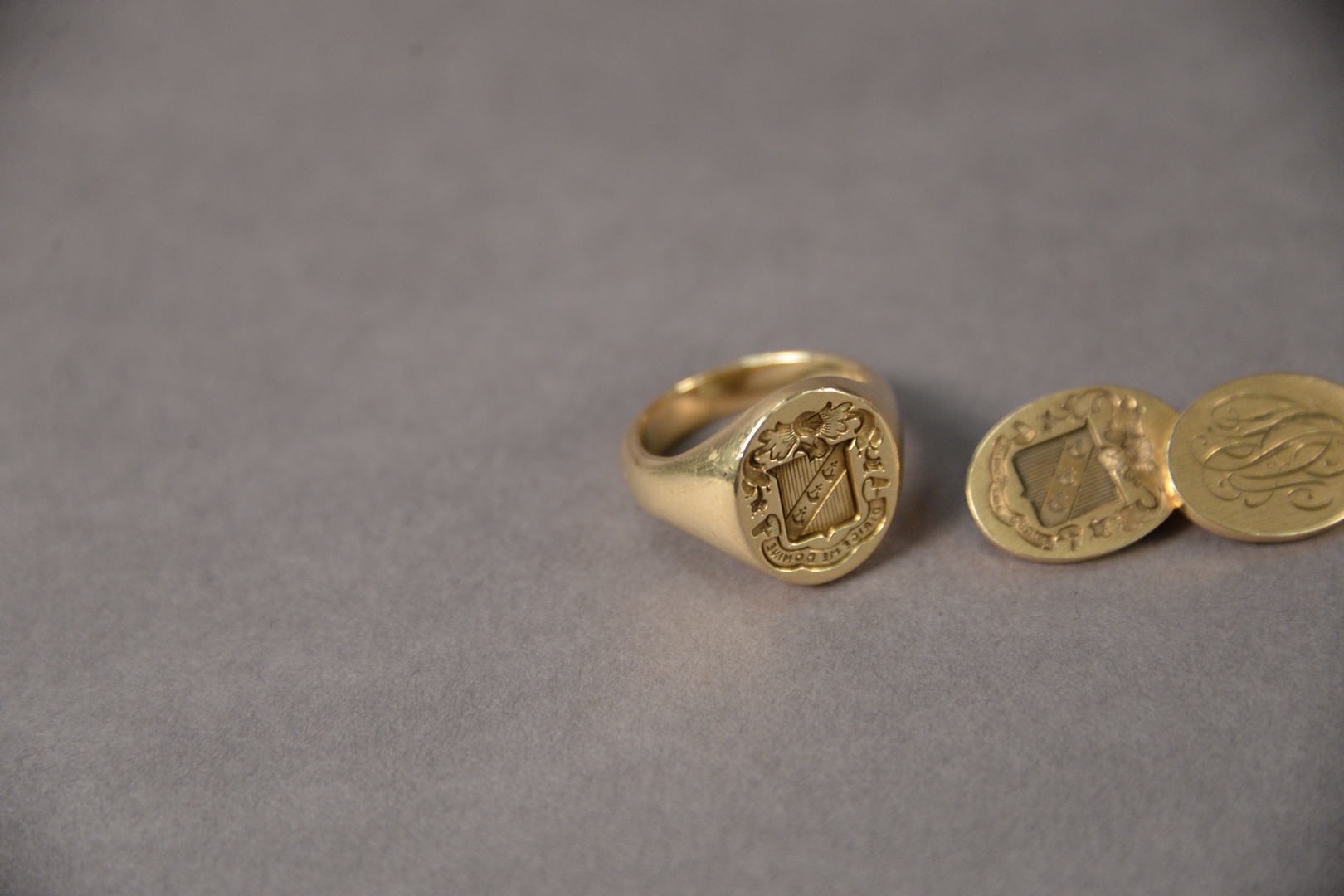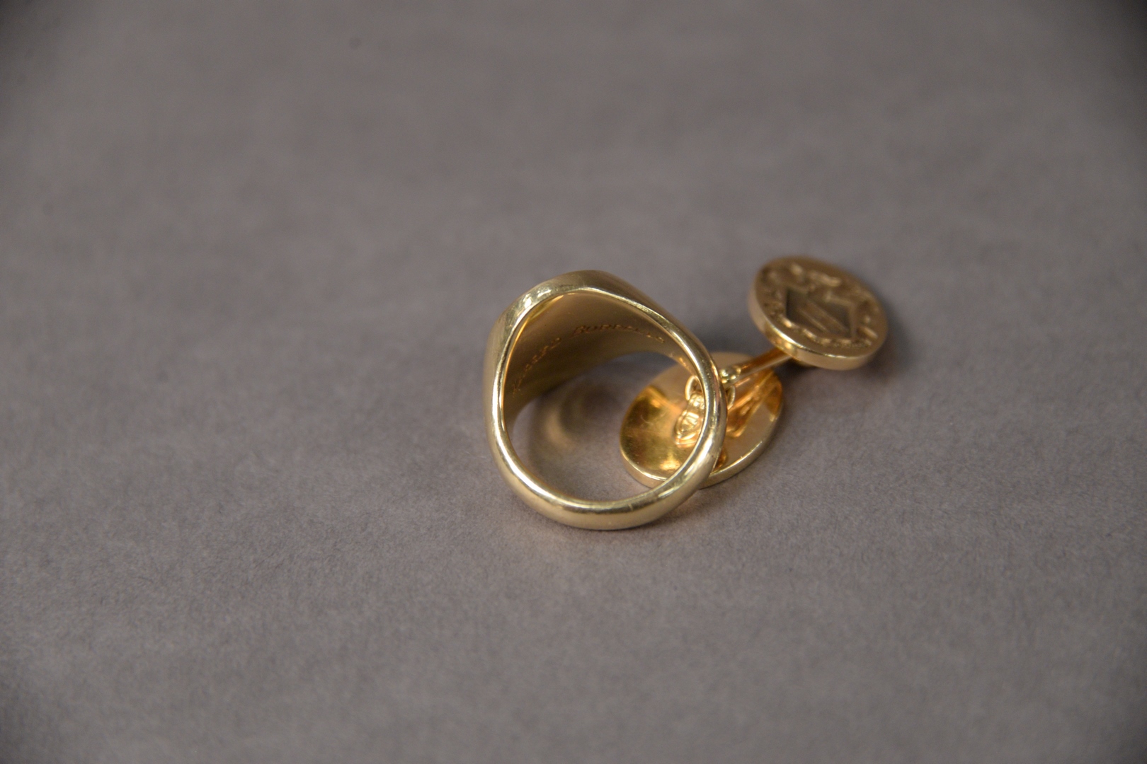 Lot 17: Tiffany 18 Karat Gold Signet Ring, along with one 18 karat cufflink, 24.2 grams.