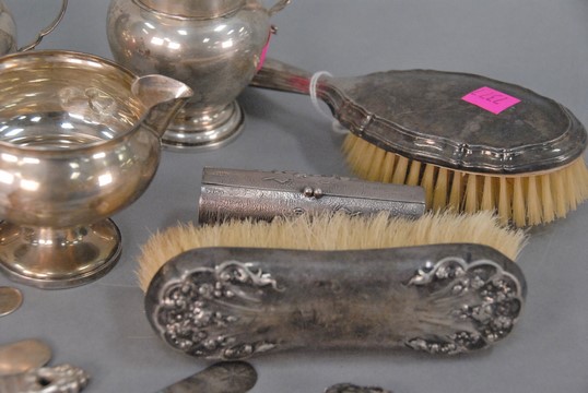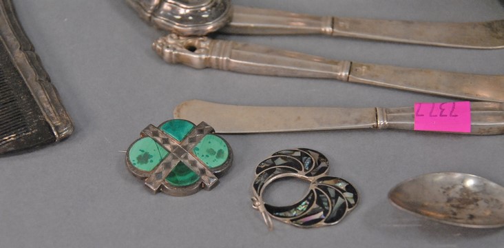 Tray lot of sterling silver including sugar, creamer, jewelry, etc.