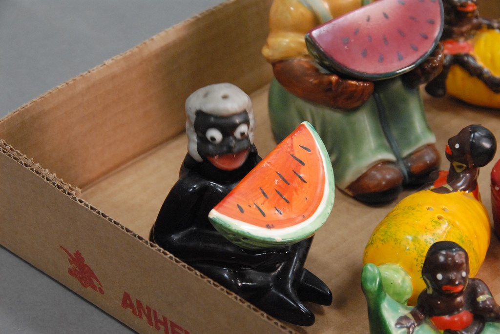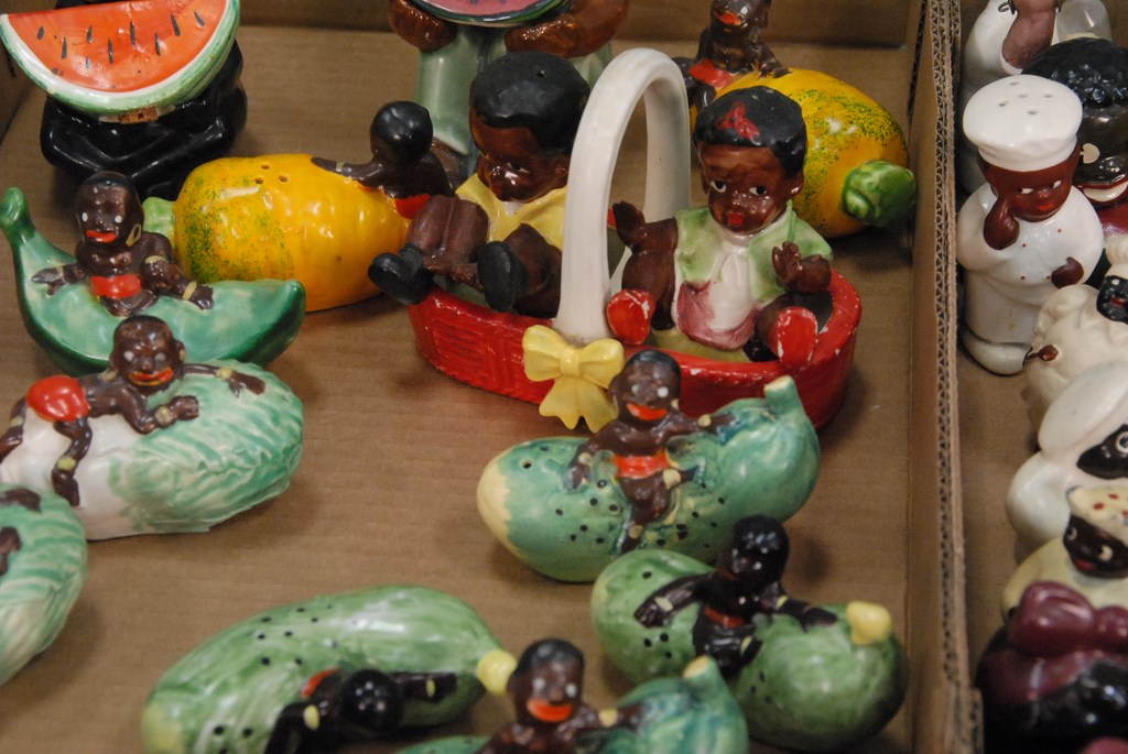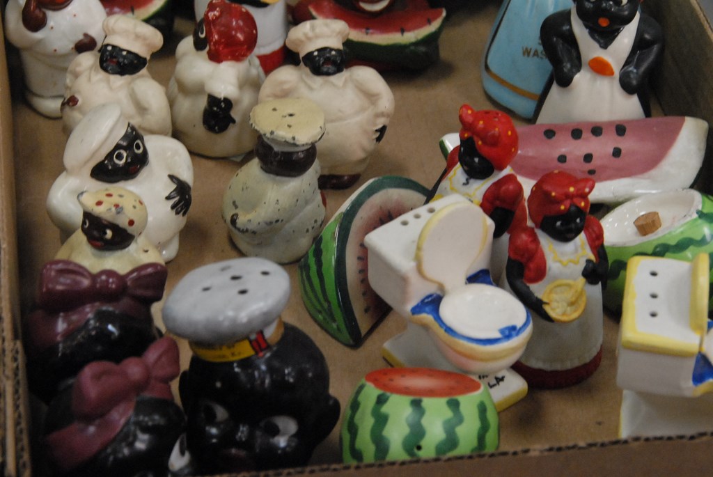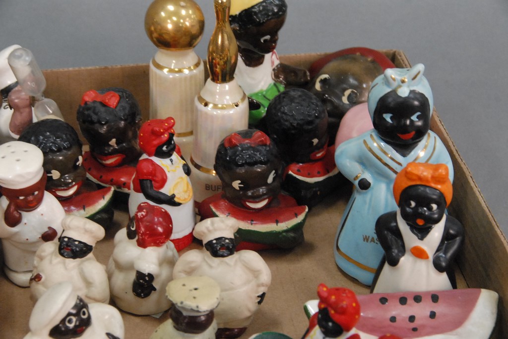 Two box lots of black memorabilia figural salt and pepper shakers.