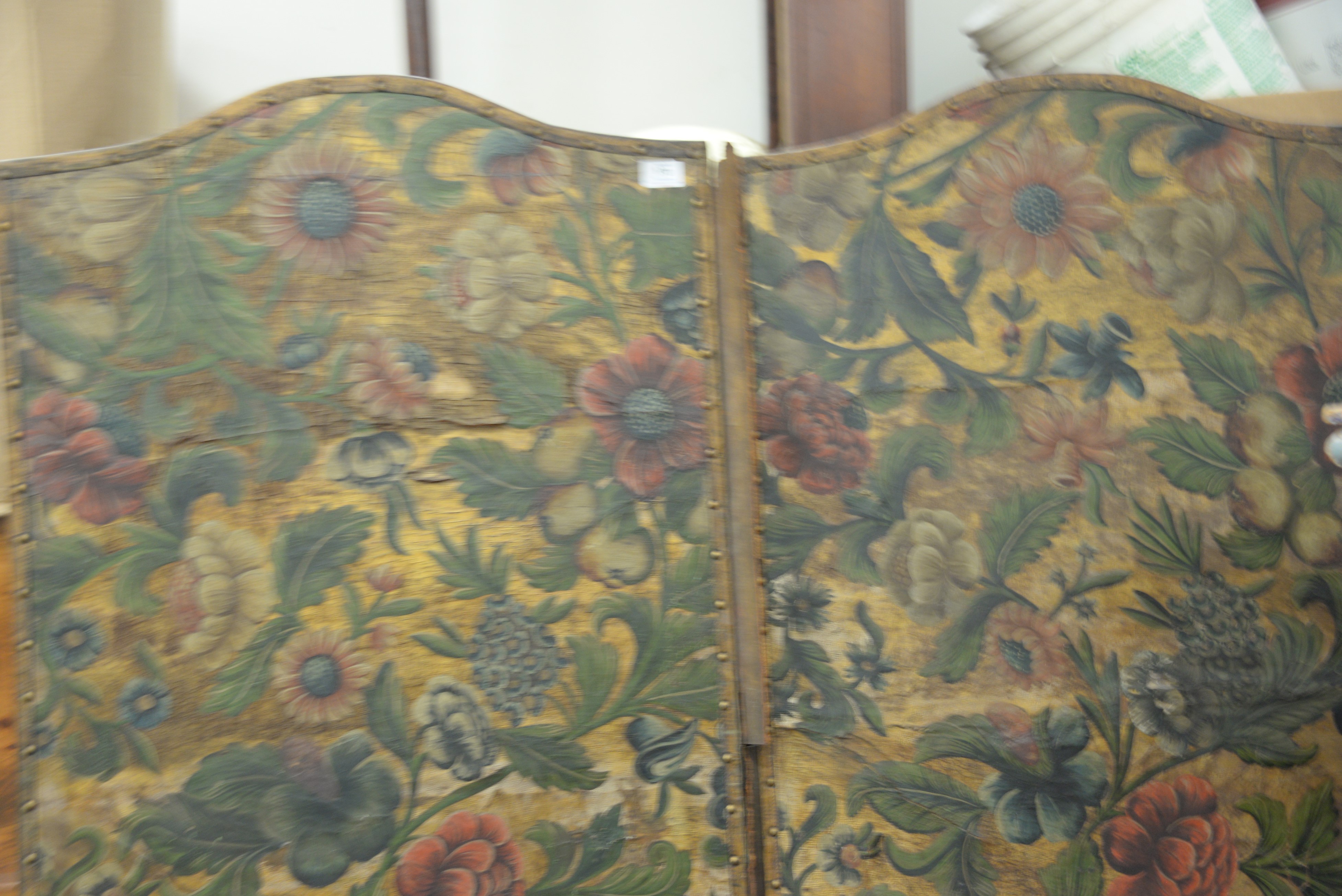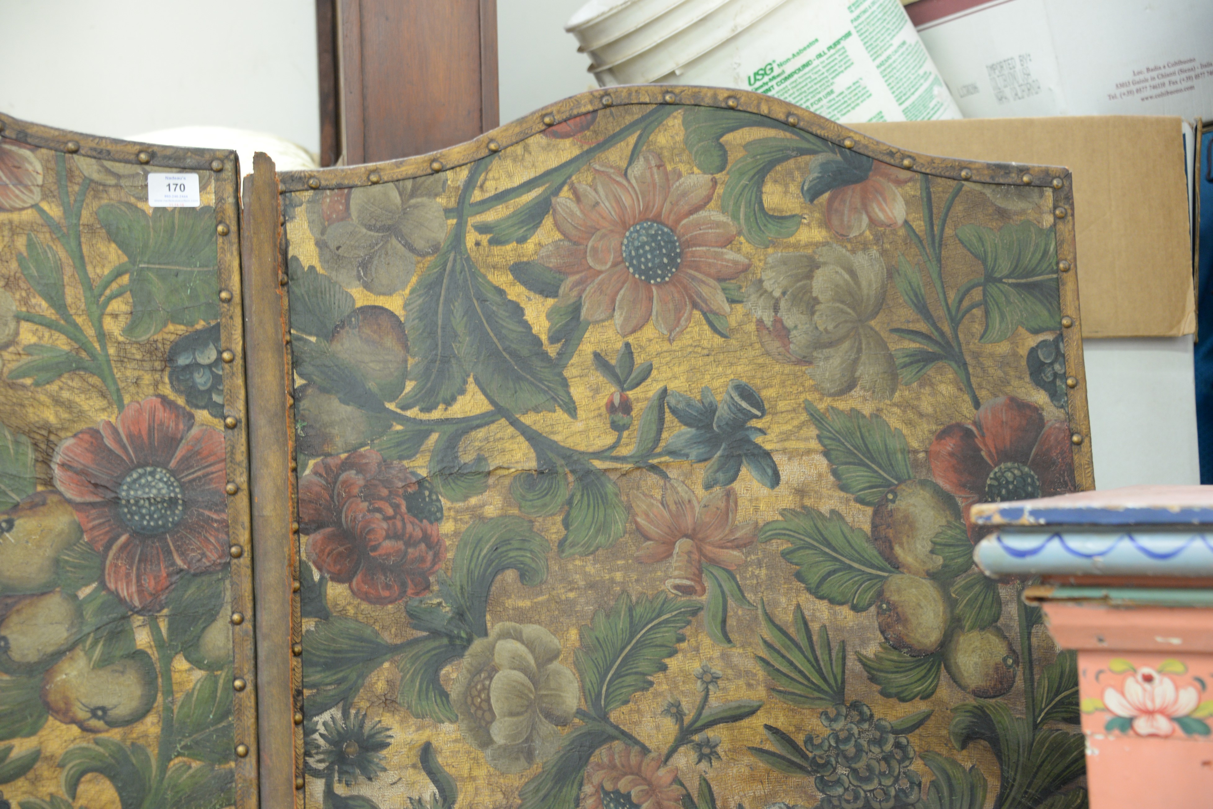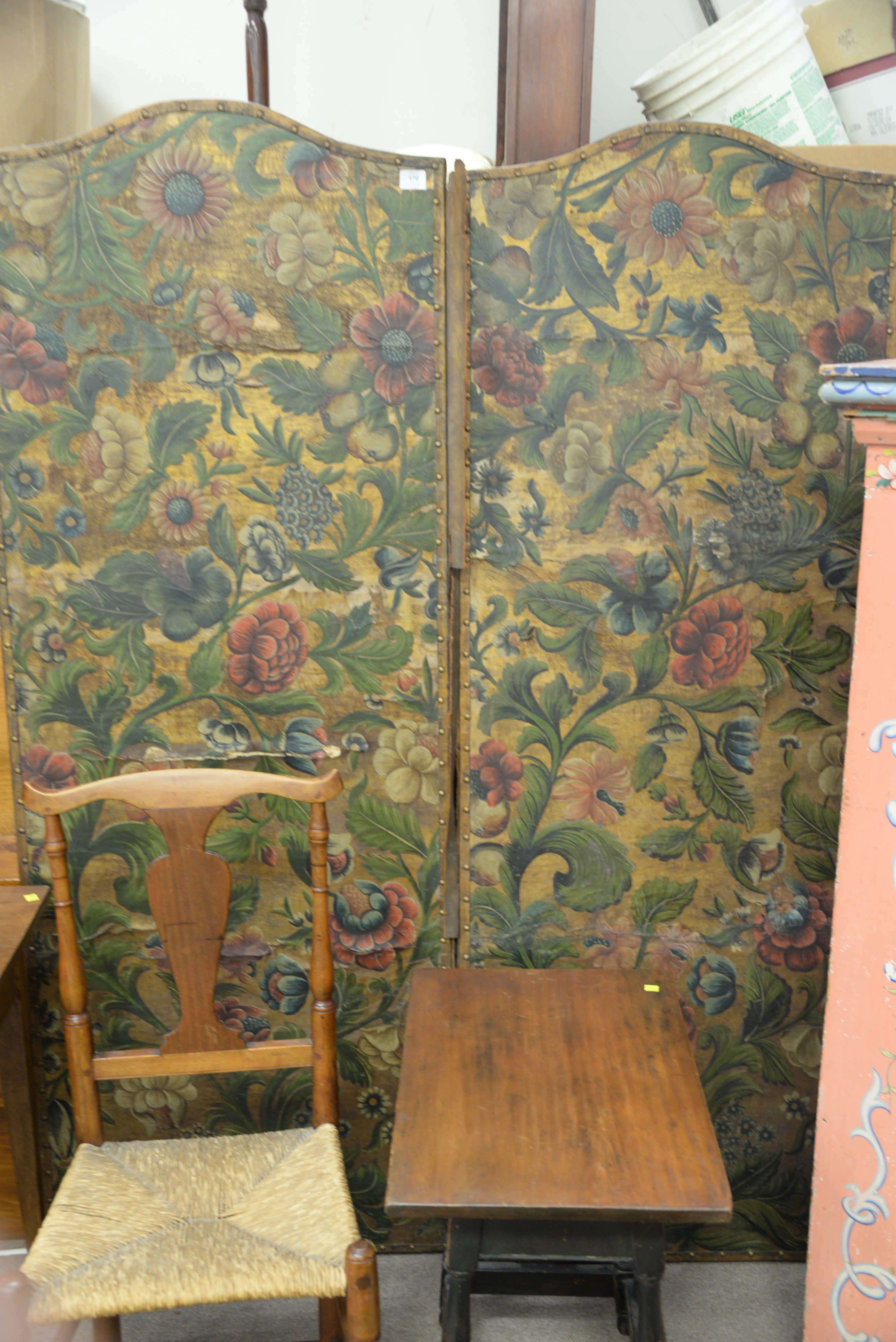 19th Century oil on canvas two part screen with scrolling flowers and fruit. ht. 75 in.
