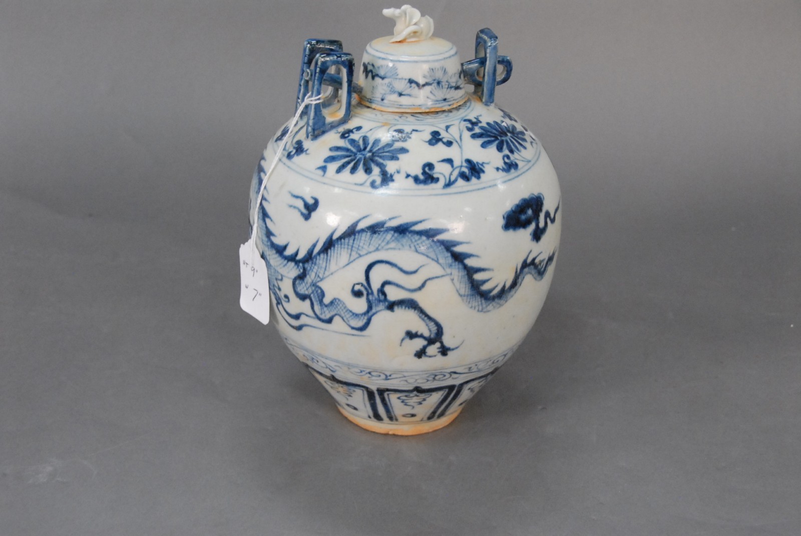 Blue and white 3 claw dragon vase.