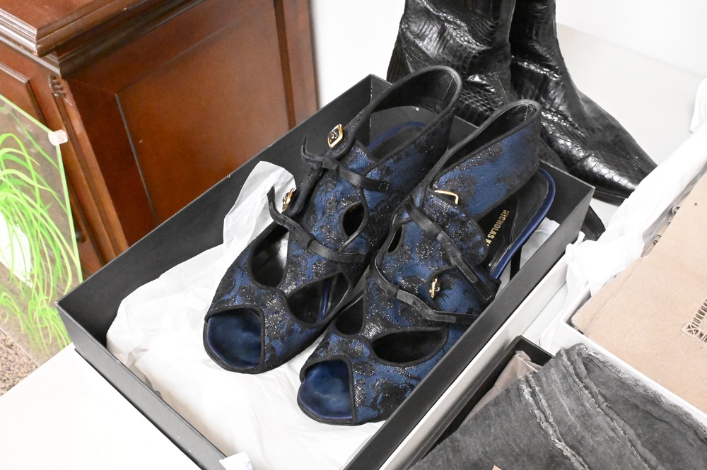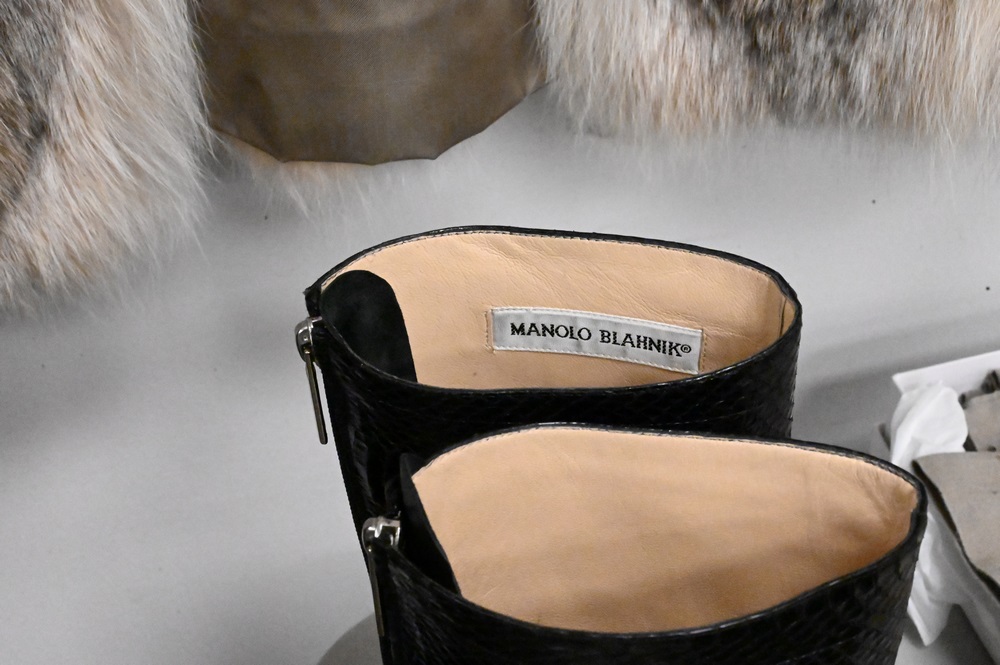 Lot 170: Couture Lot, to include a pair of Manolo Blahnik snakeskin boots, size 38; a pair of Nicholas Kirkwood heels, size 38 1/2; Faliero S…