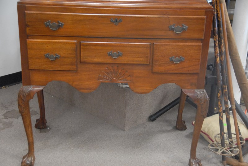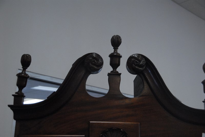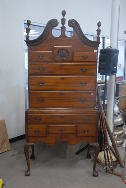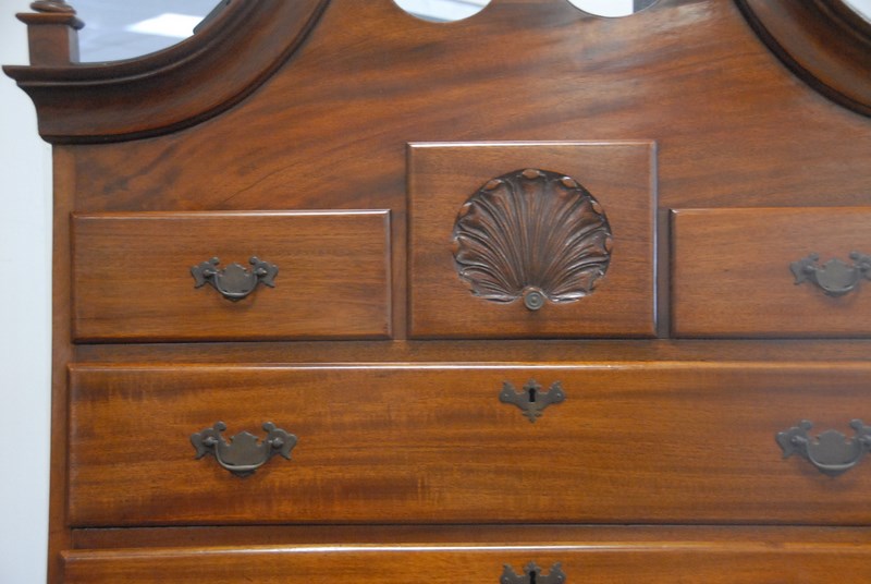 Lot 170: Custom mahogany Chippendale style highboy in two parts with full bonnet top and ball and claw feet, ht. 89in. wd. 39 1/2in.
