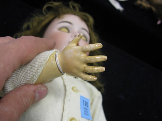 Doll, Hardwood four bisque on ball jointed composition body, open mouth