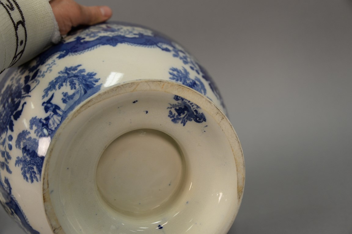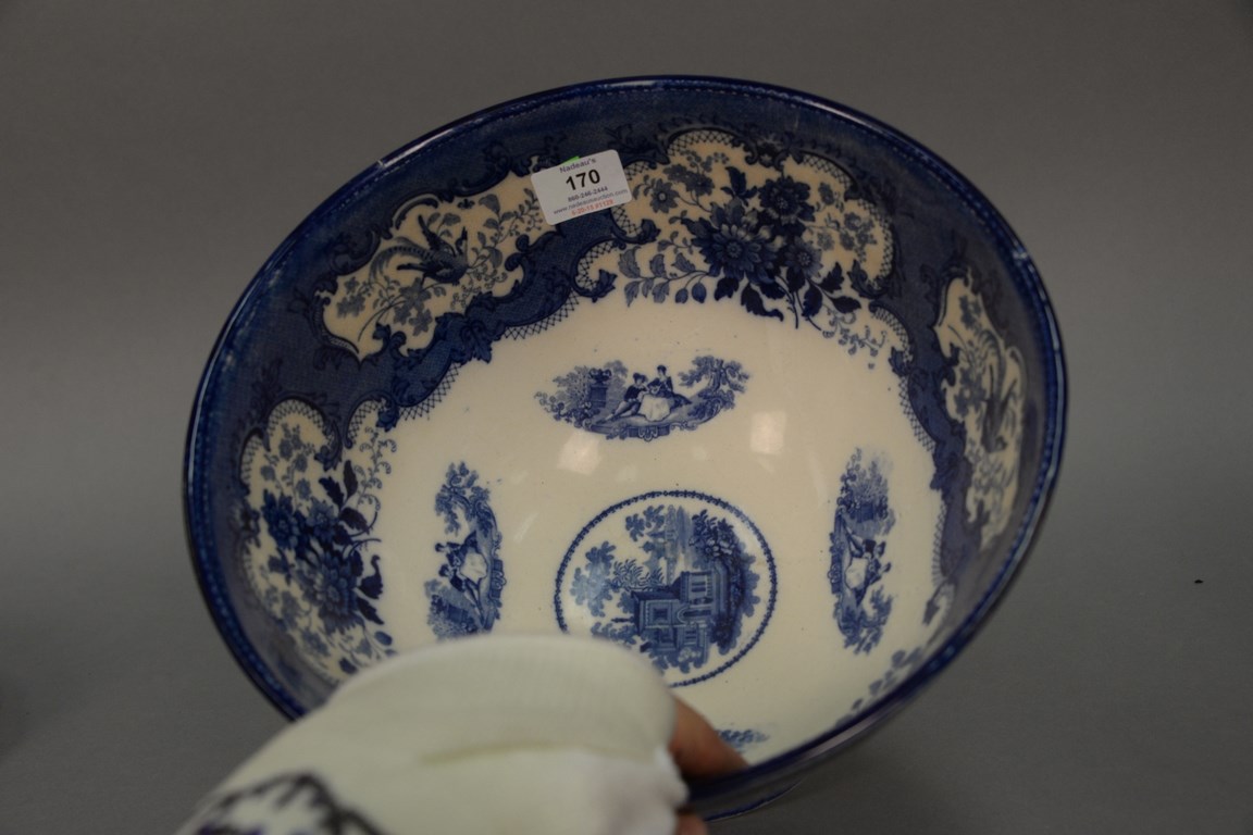 Doulton Burslem flow blue footed punch bowl. ht. 8 in. dia. 12 in.