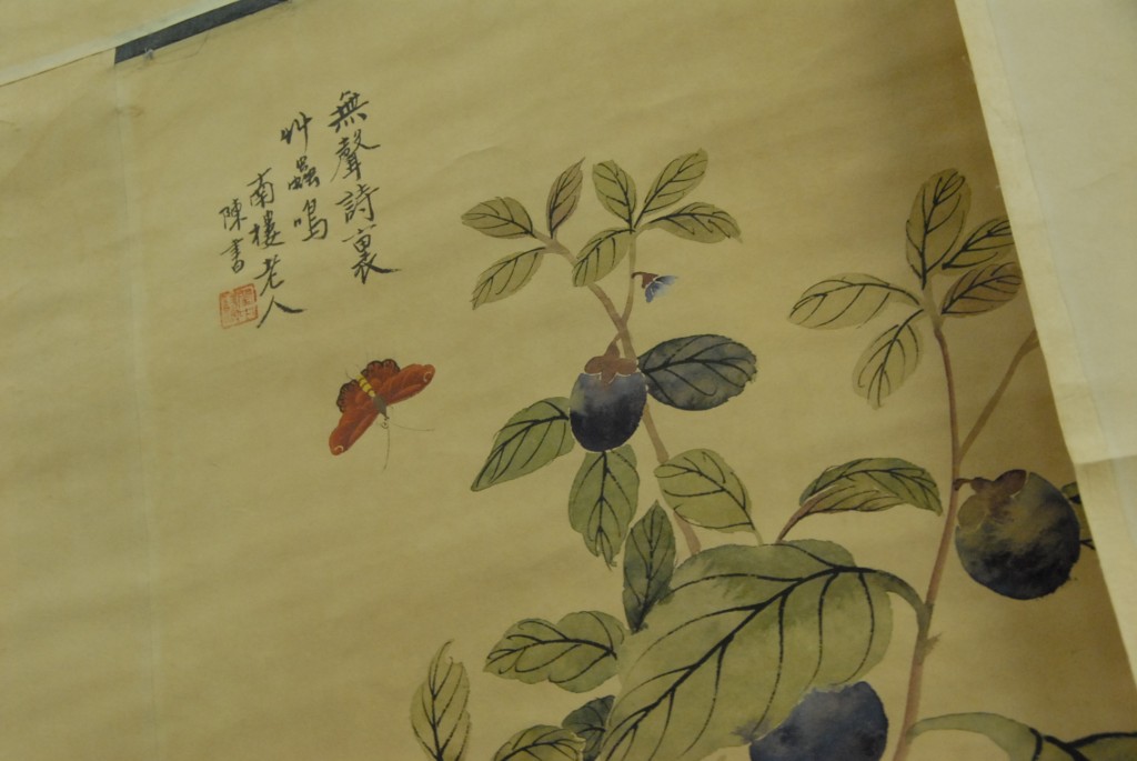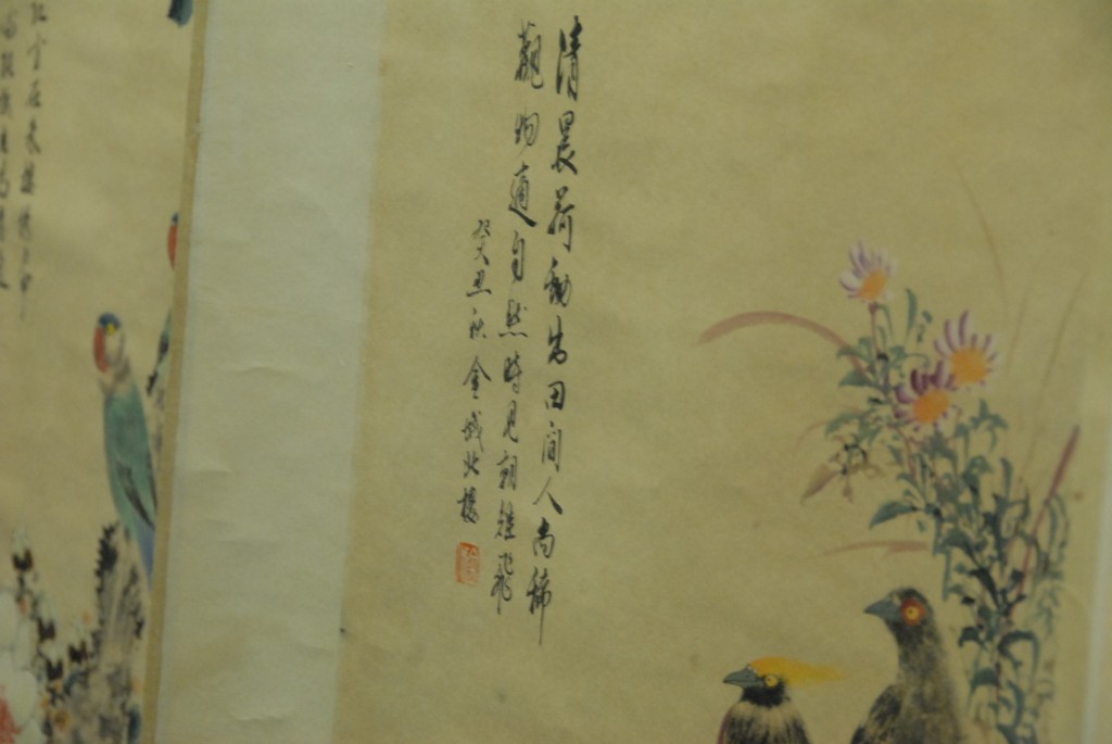 Lot 170: Five Oriental scrolls birds with blossoming flowers, 33 x 17, 33 x 18, 33 x 18, and 33 x 16.